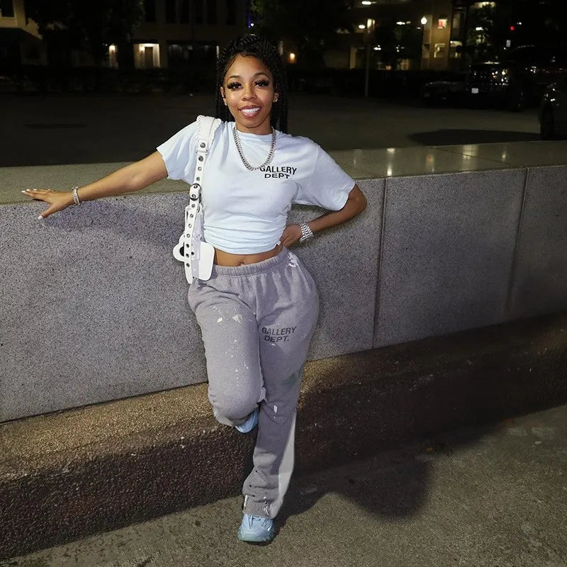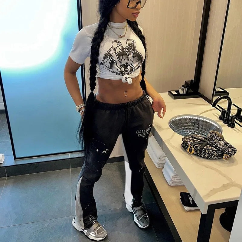 여성 가을 스웨트 팬츠 조거 카고 플레어 팬츠 하이웨이스트 루즈 스트레이트 스택 팬츠 캐주얼 가을 힙합 패션 2023