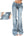 GETADME 여성용 백포켓 리본 자수 패셔너블 와이드 레그 팬츠 다용도 워싱 데님 팬츠