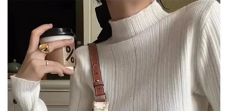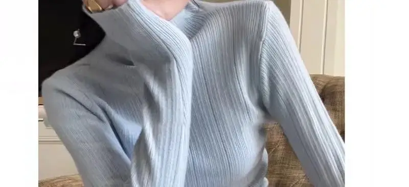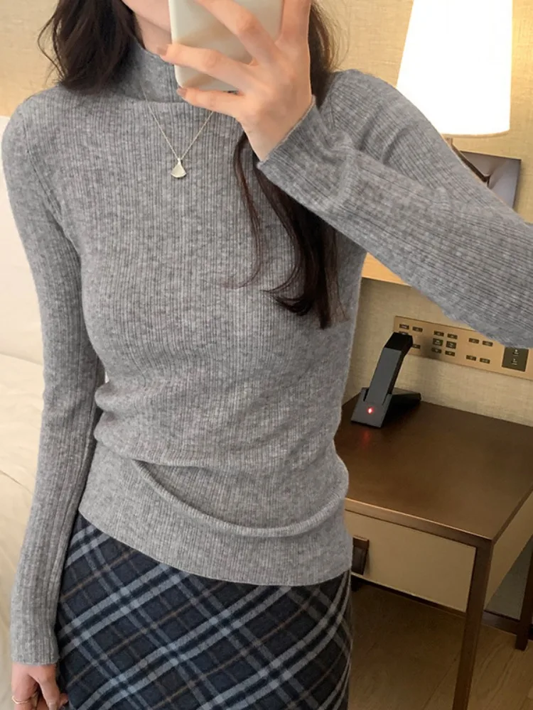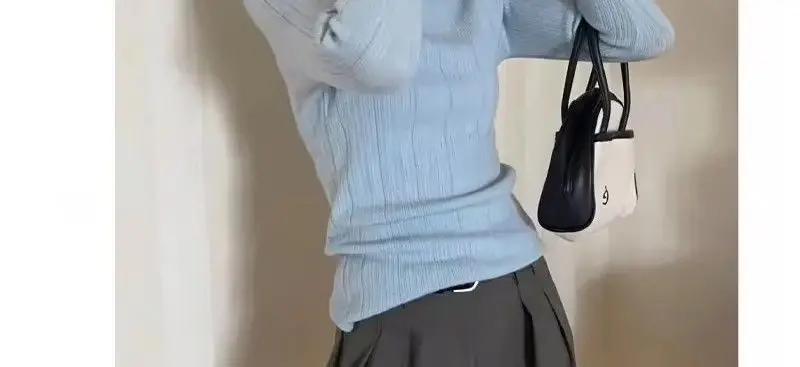 GETADME 딥타운 베이직 터틀넥 크롭 스웨터 여성 캐주얼 니트 풀오버 솔리드 컬러 점퍼 긴팔 상의 슬림 바텀 셔츠