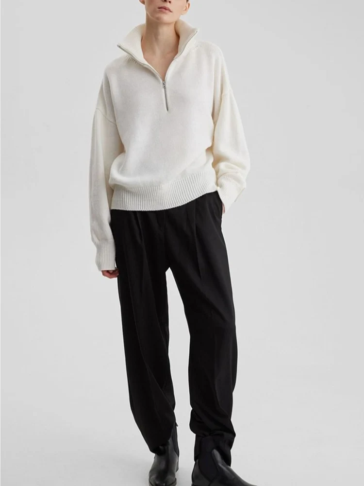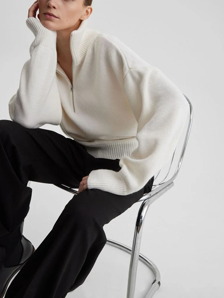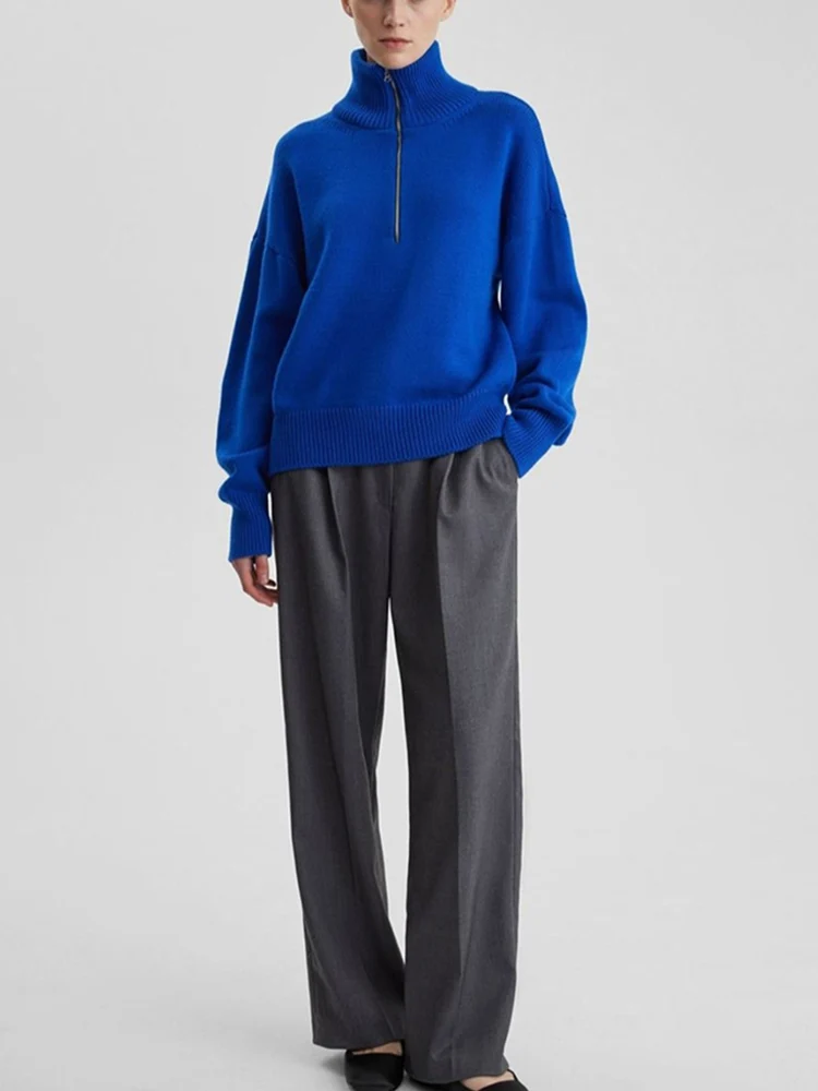 GETADME 여성용 터틀넥 지퍼 니트 스웨터 두껍고 따뜻한 겨울 점퍼 여성 소프트 클래식 솔리드 카키 블루 화이트 스웨터