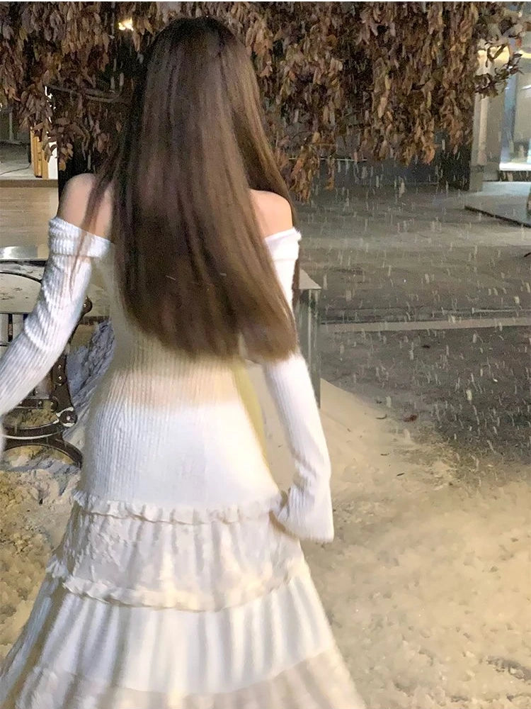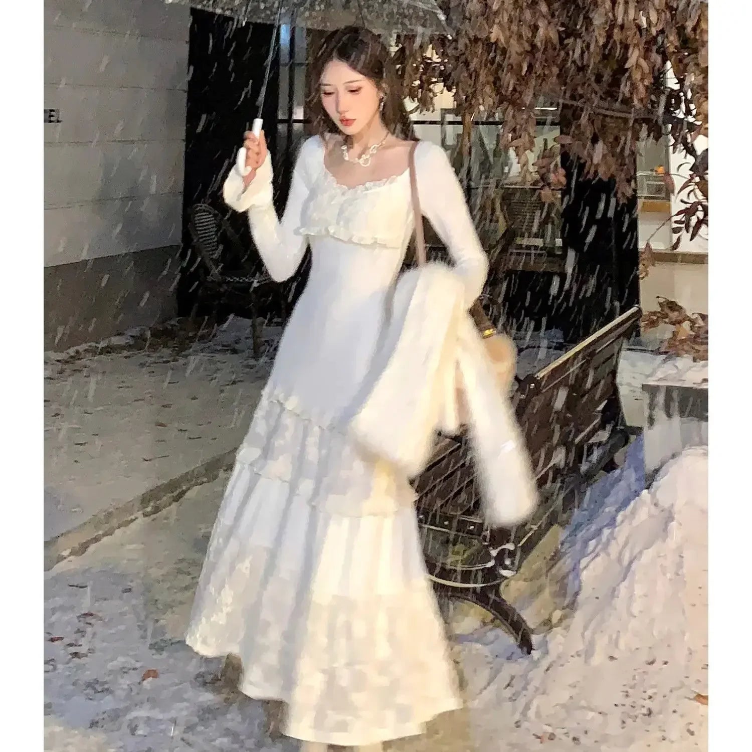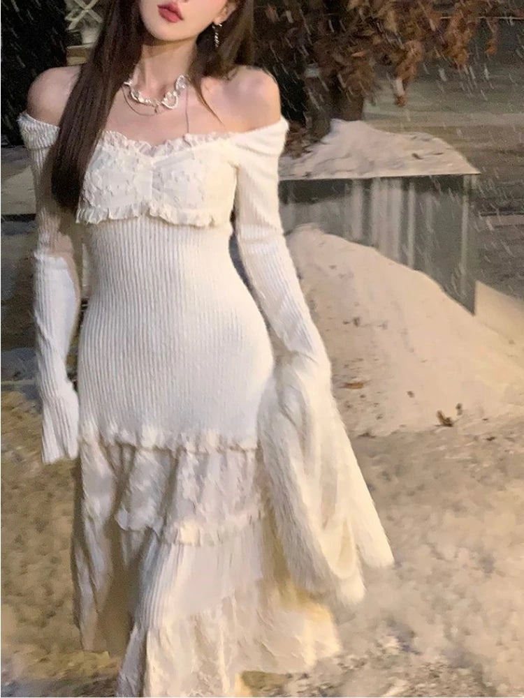 Getadme 2025 봄 우아한 니트 드레스 여성 레이스 패치워크 코란 프린세스 미디 드레스 여성 캐주얼 스위트 이븐 파티 페어리 드레스