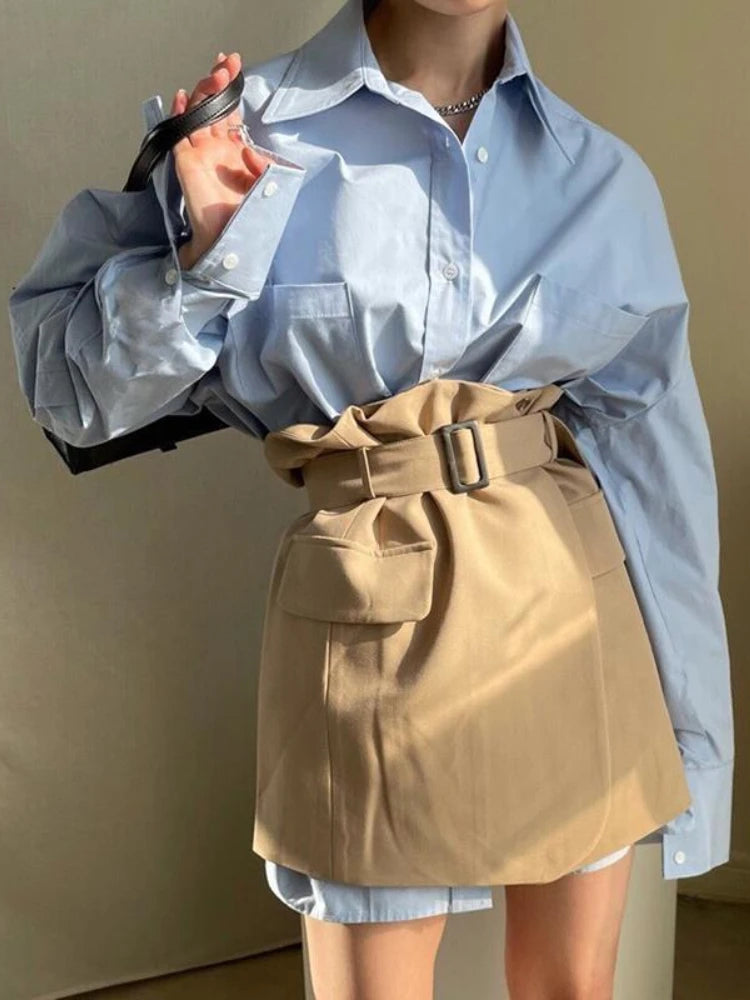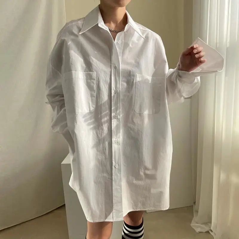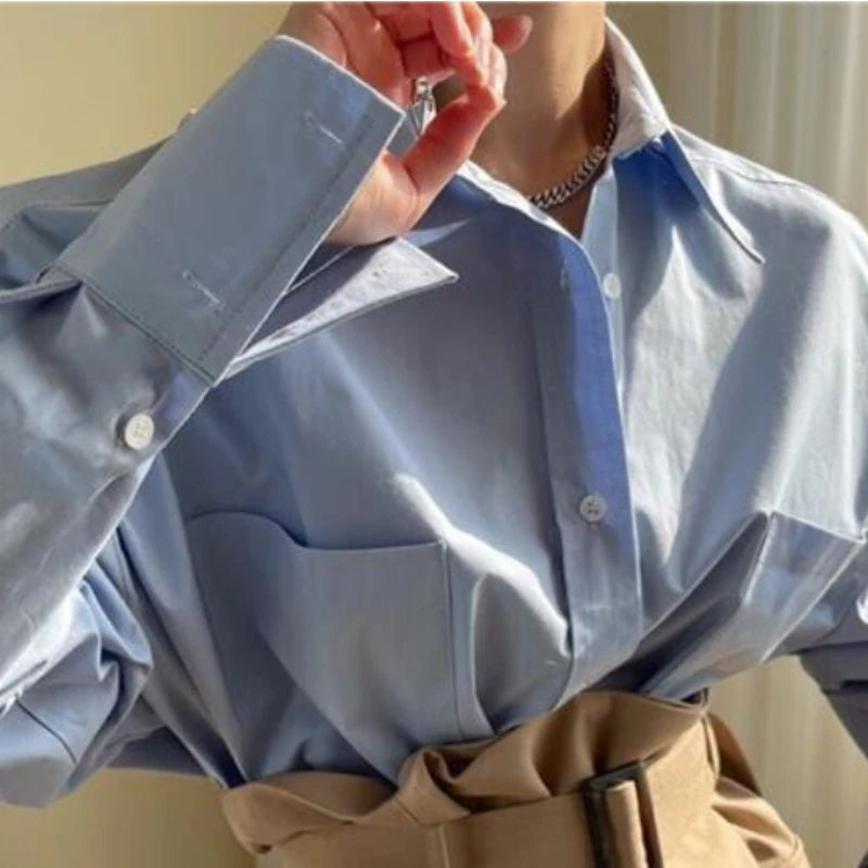 Getadme-한국 패션 캐주얼 블라우스 여성 하라주쿠 BF 루즈 롱 슬리브 셔츠 우아하고 심플하며 세련된 올매치 오피스 레이디 탑