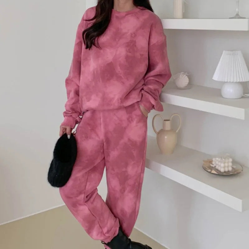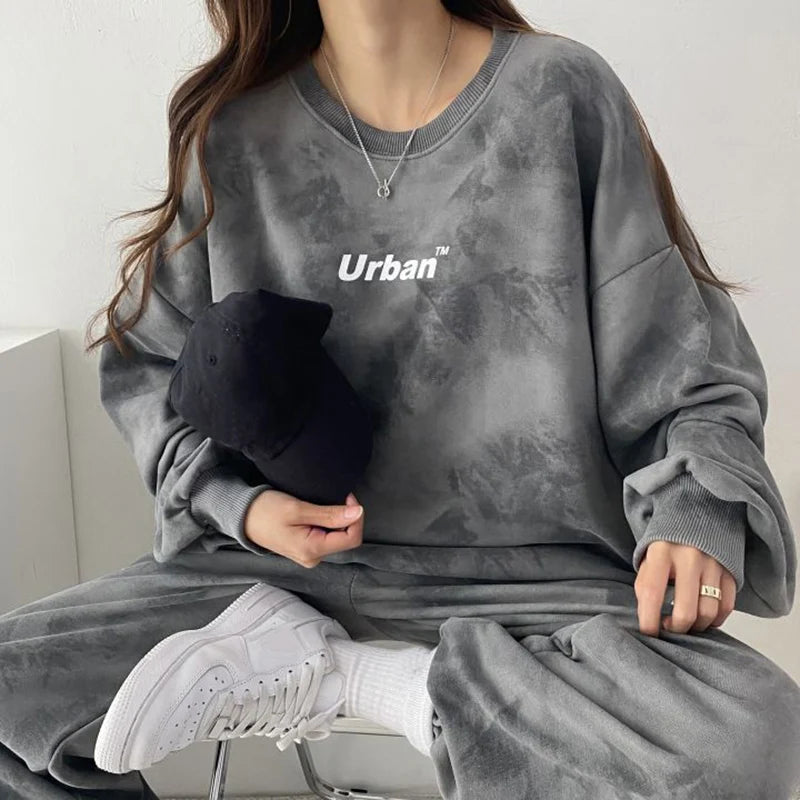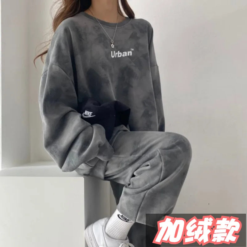Getadme-가을 여름 2피스 세트 여성 바지 정장 플러스 사이즈 어반 캐주얼 긴팔 여성 트랙수트 스포츠웨어 플러시 벨벳