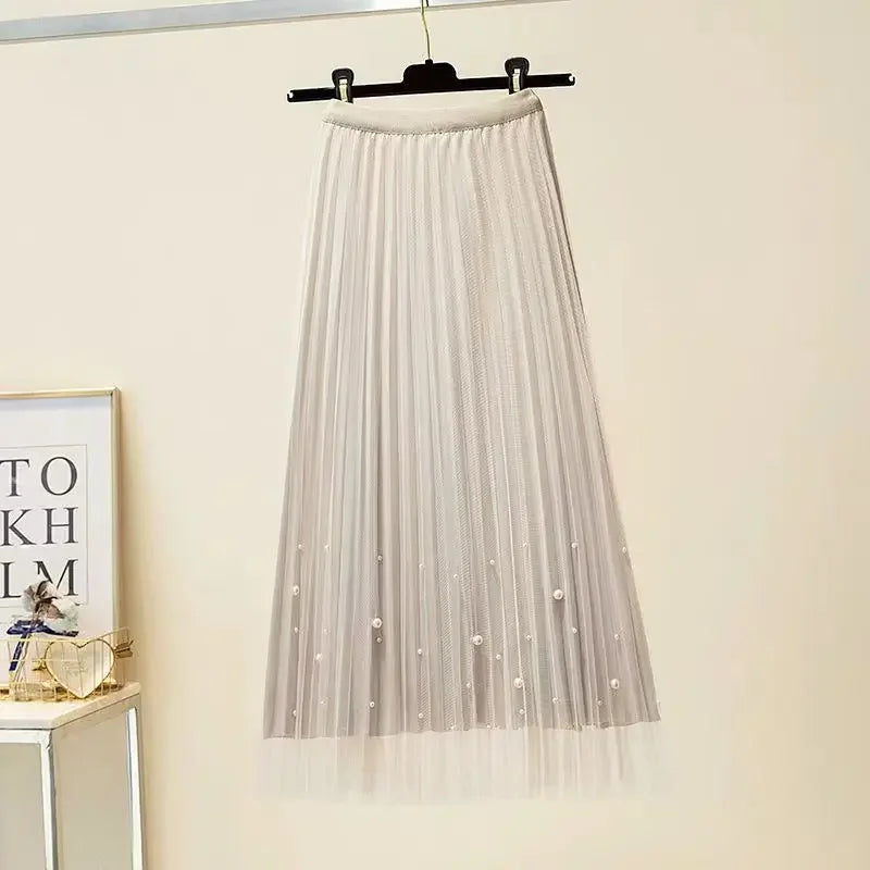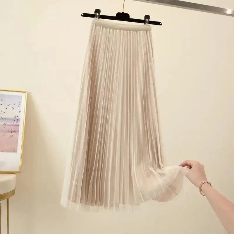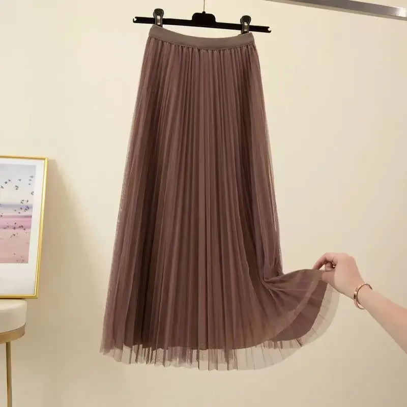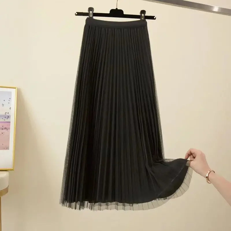 Getadme 가을 겨울 여성 오버사이즈 투피스 세트 롱 코트 슈트 및 메시 스커트 여성 우아한 솔리드 블레이저 드레스 슈트 (벨트 포함)