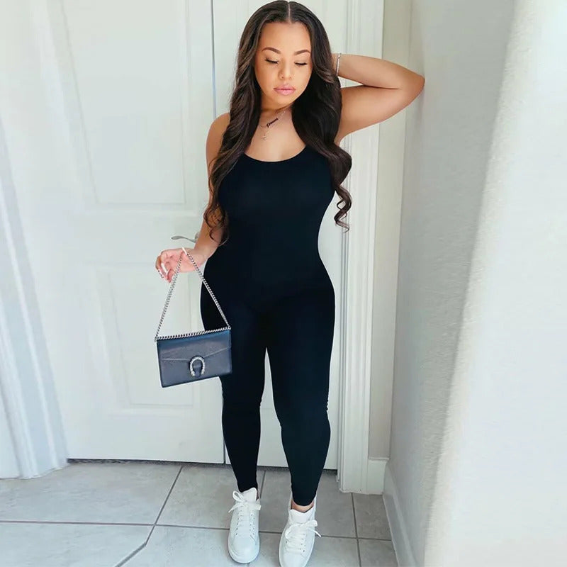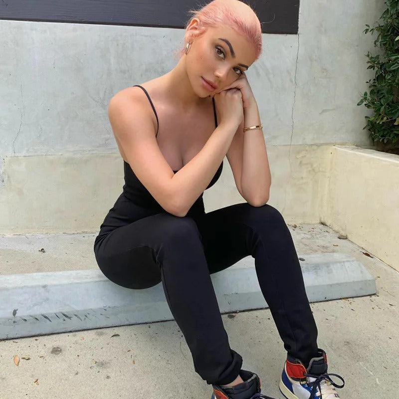 블랙 섹시 점프수트 여성 여름 민소매 롬퍼 스파게티 스트랩 백리스 캐주얼 바디콘 스키니 스포츠 패션 스트리트웨어