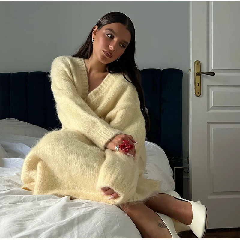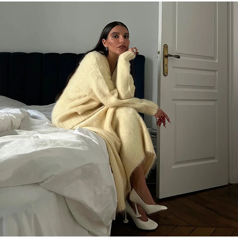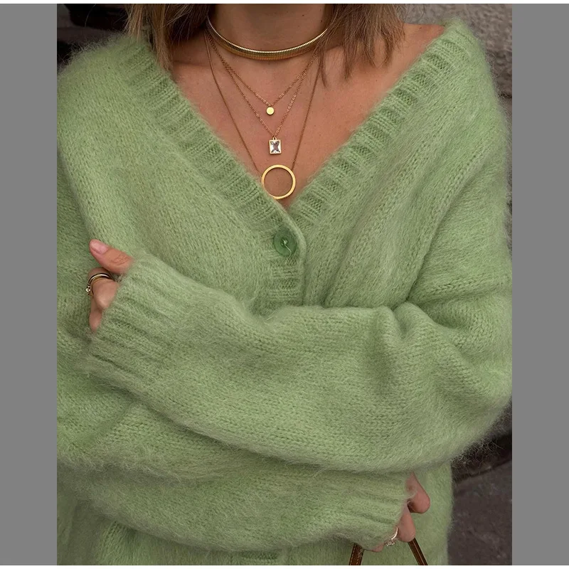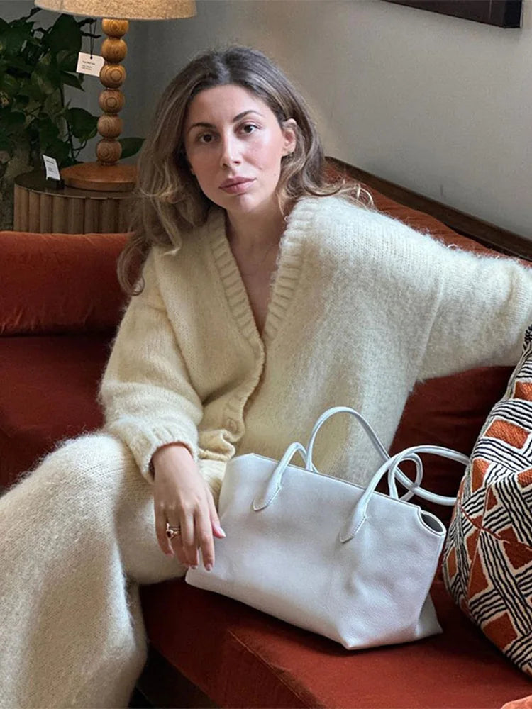 모델 번호 : 우아한 싱글 브레스티드 모헤어 니트 카디건 슈트