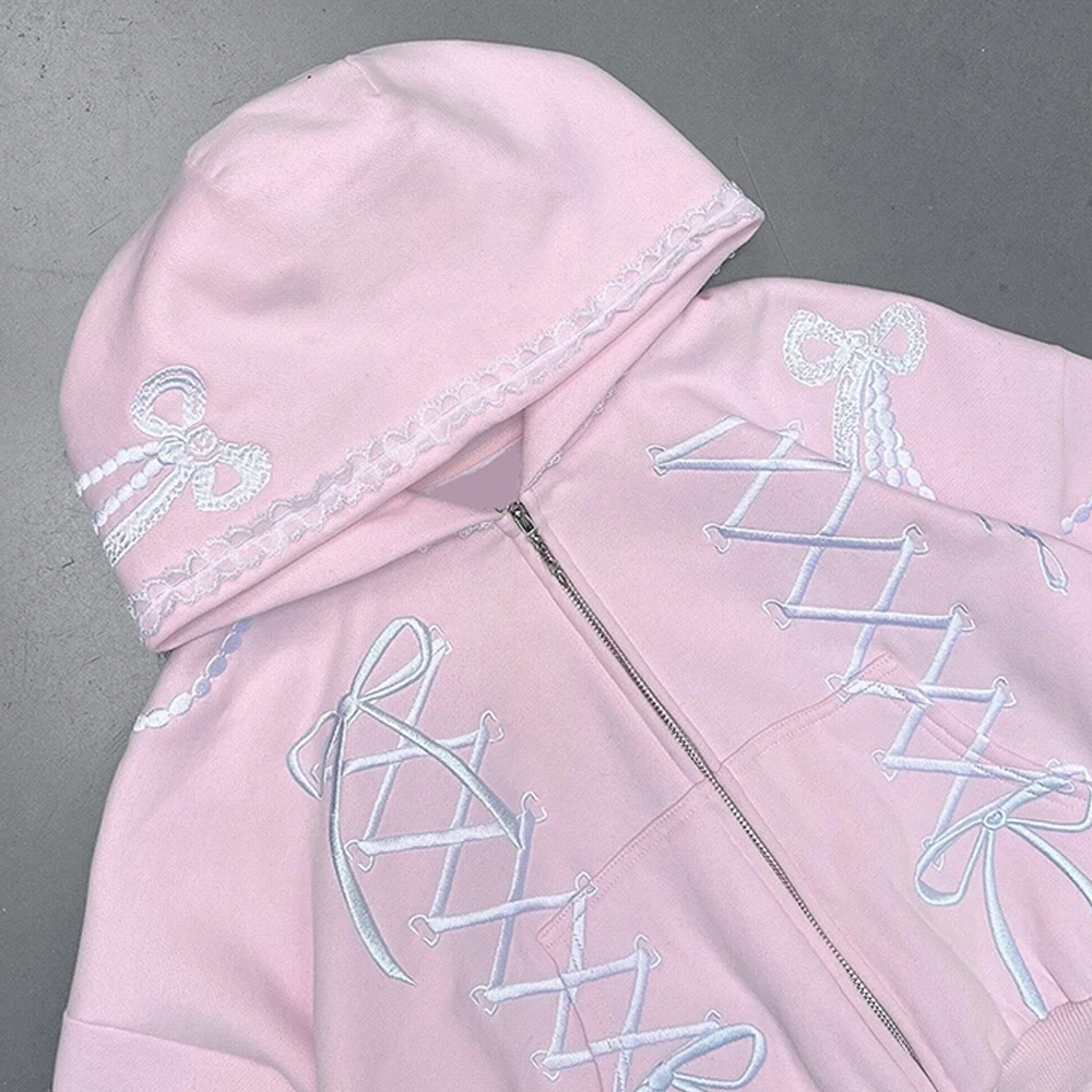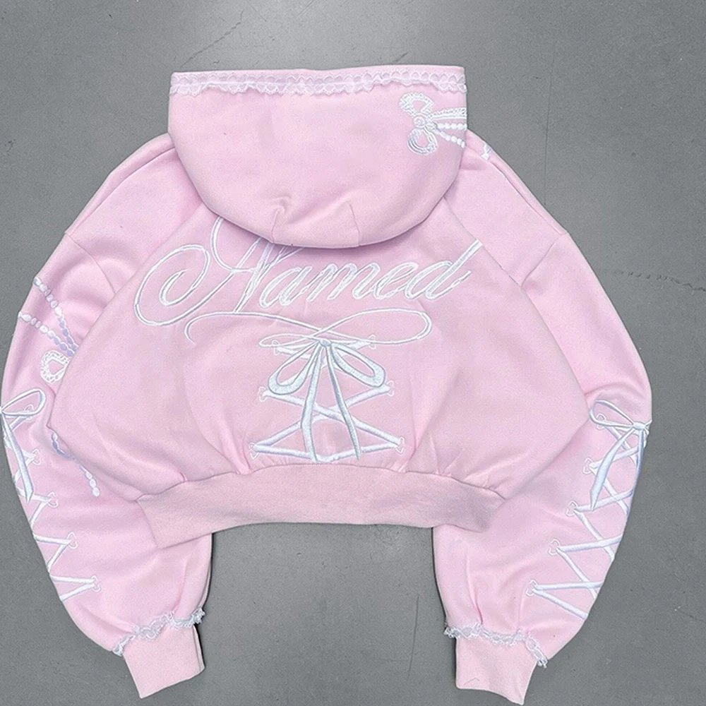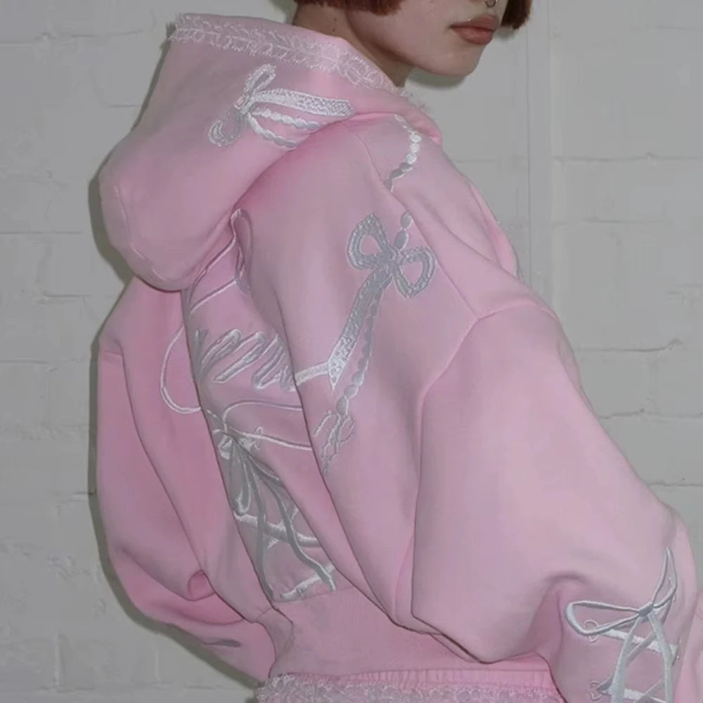 GETADME 유럽 및 미국 가을 겨울 루즈 자수 후드 티 Y2K 슈트 스트리트 스포츠 여성 스파이스 레트로
