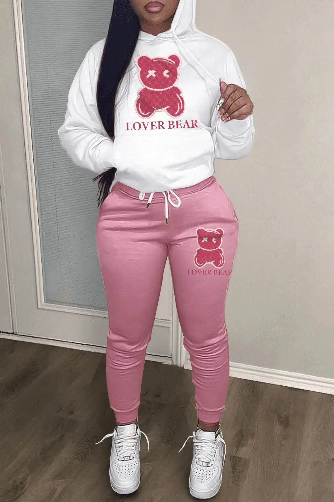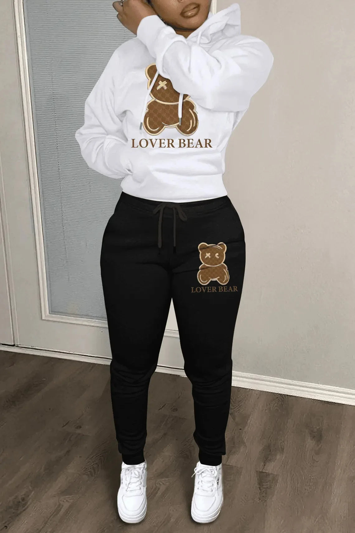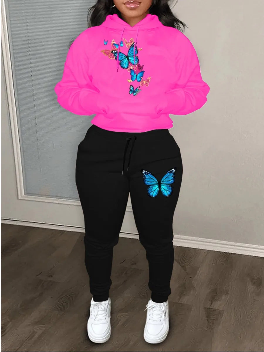GETADME 가을 겨울 투피스 팬츠 정장 버터플라이 레터 프린트 캥거루 포켓 트랙수트 세트 풀오버 화이트 후드&스웨트 팬츠