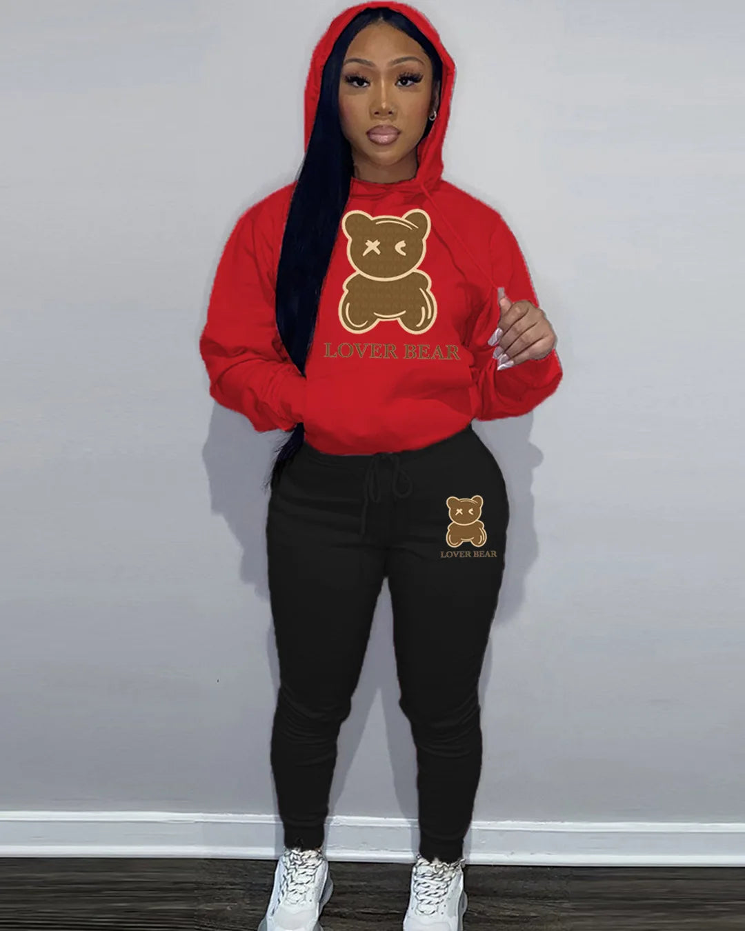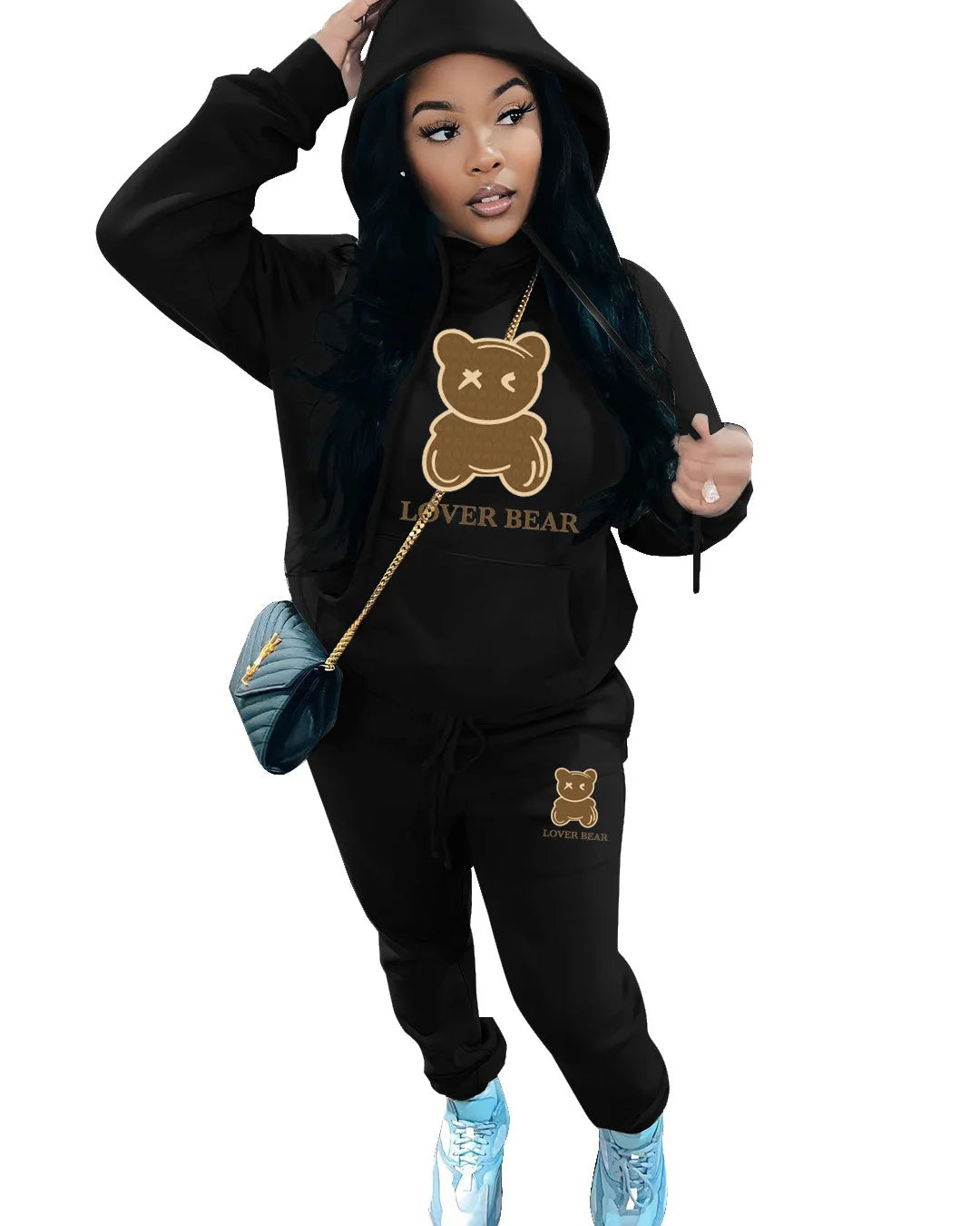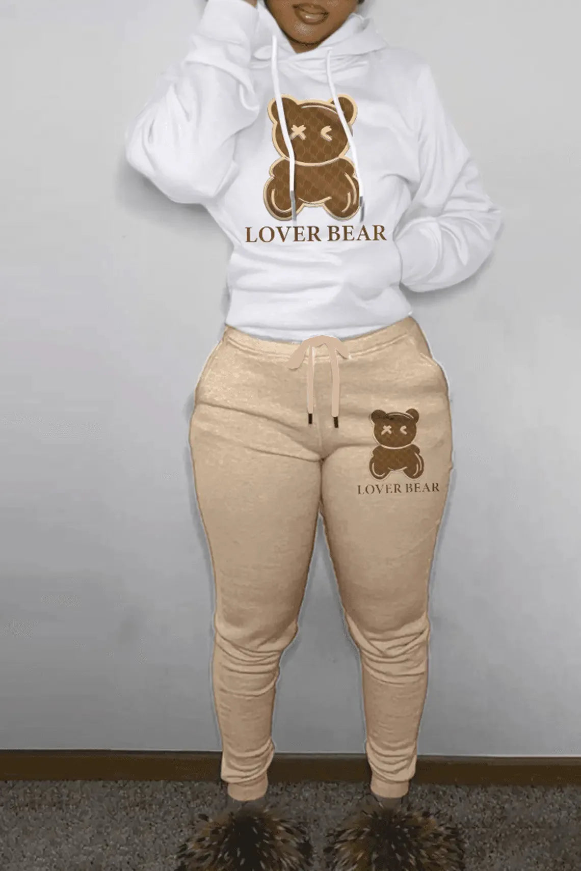 GETADME 가을 겨울 투피스 팬츠 정장 버터플라이 레터 프린트 캥거루 포켓 트랙수트 세트 풀오버 화이트 후드&스웨트 팬츠