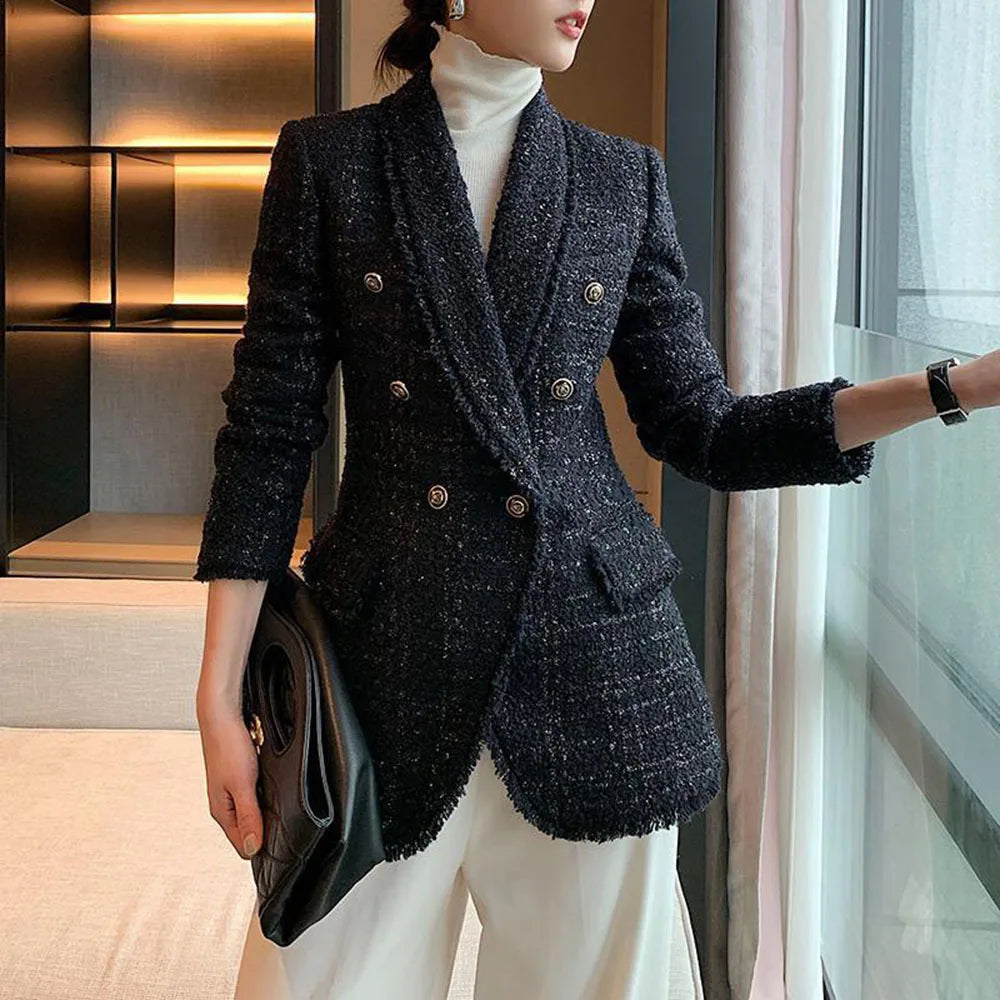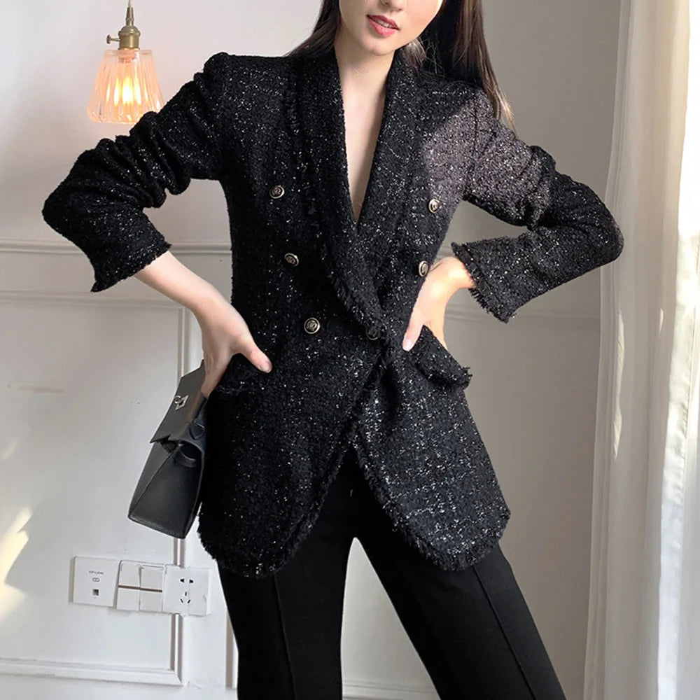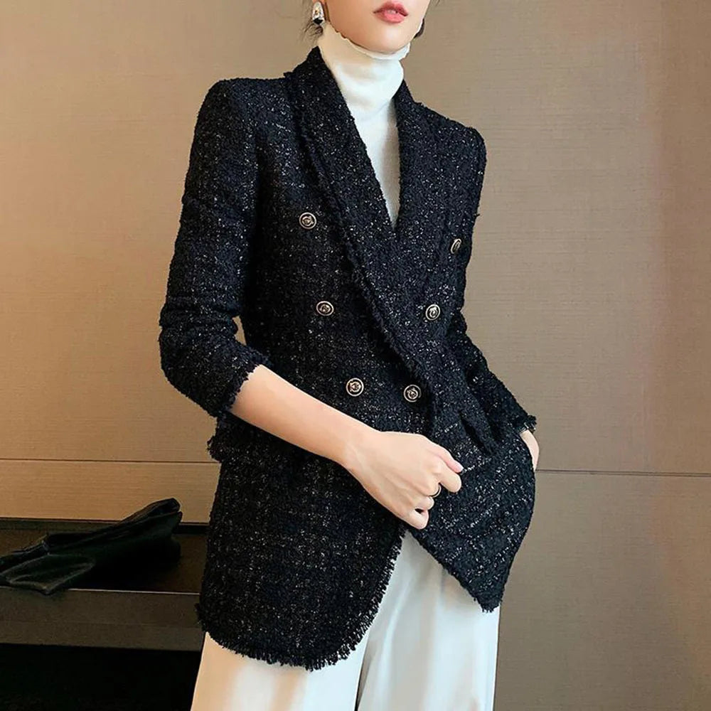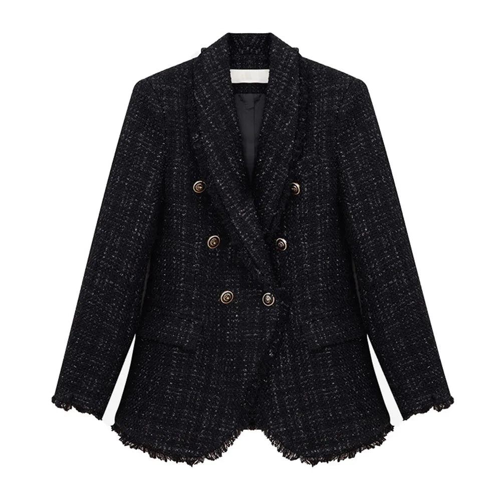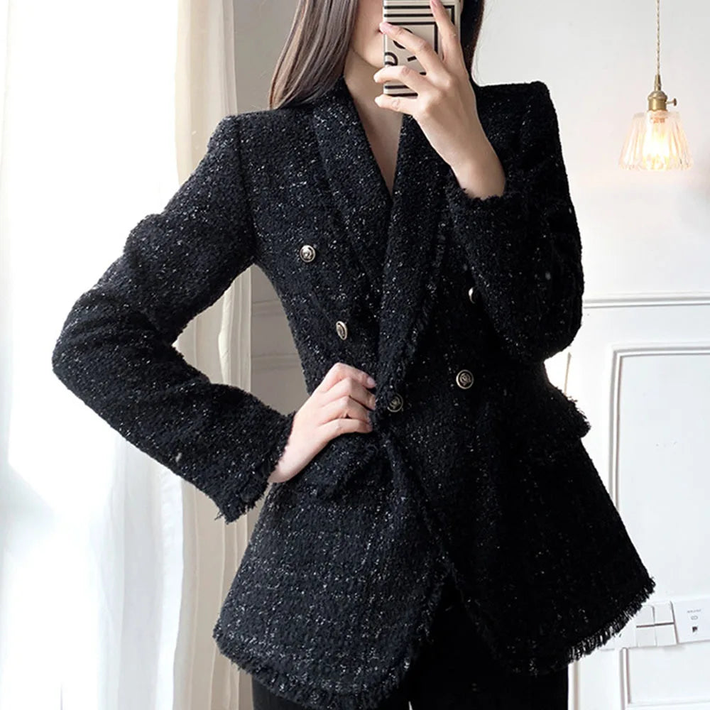GETADME 고품질 슬림 슈트는 얇고 작은 향기 재킷 여성 2022 새로운 더블 브레스트 여신 기질 트위드 슈트 재킷입니다