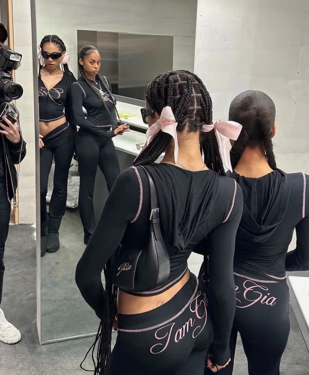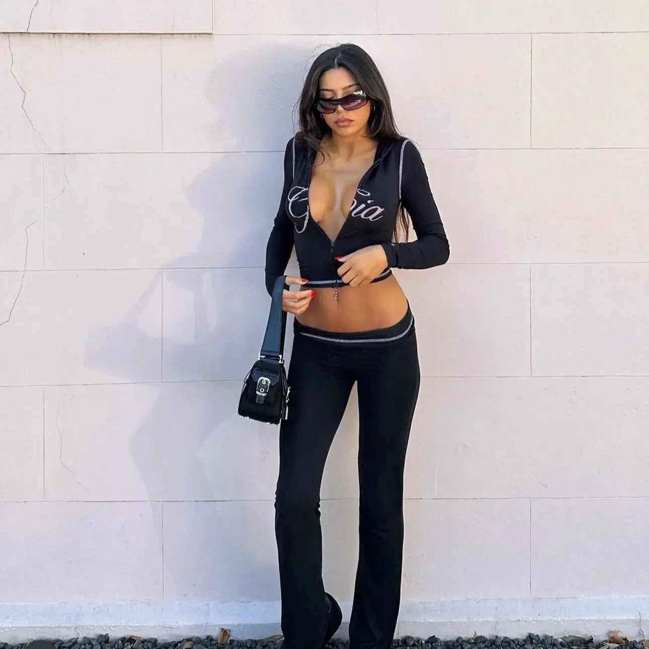 Getadme iamgia 슬림 숄더 모노그램 프린트 브라이트 스레드 디자인 슬림 후드 지퍼 숏 재킷 팬츠 슈트