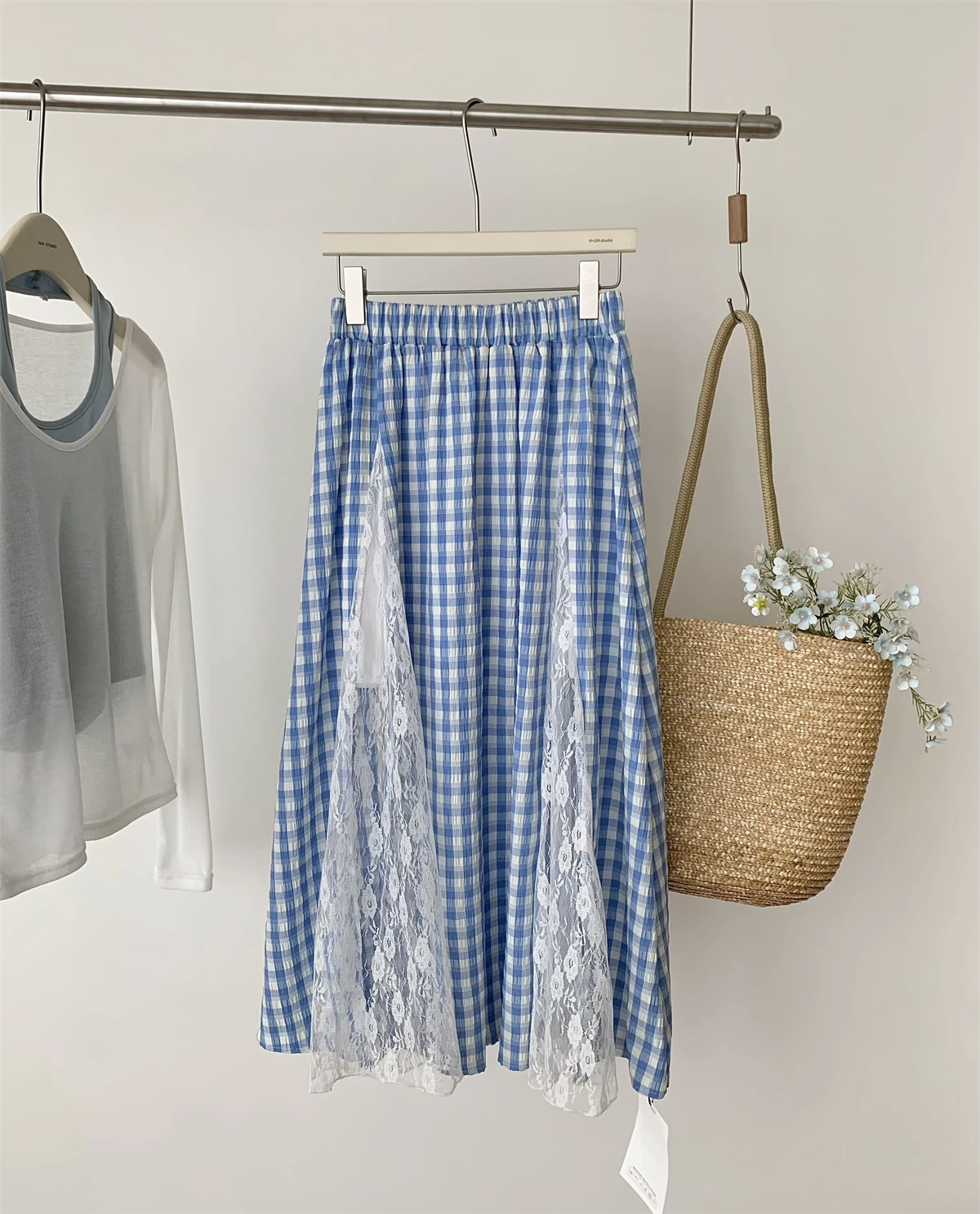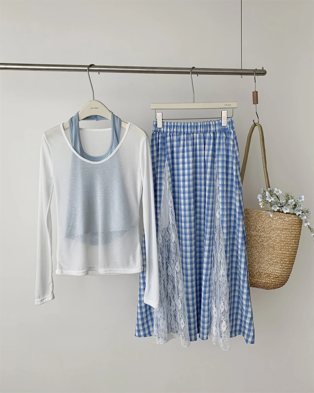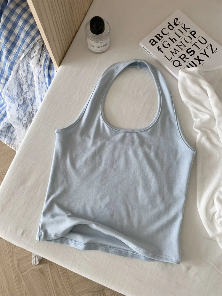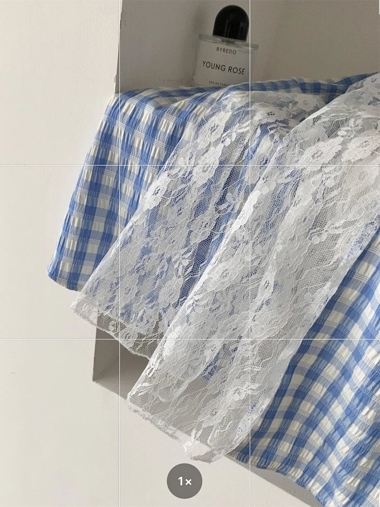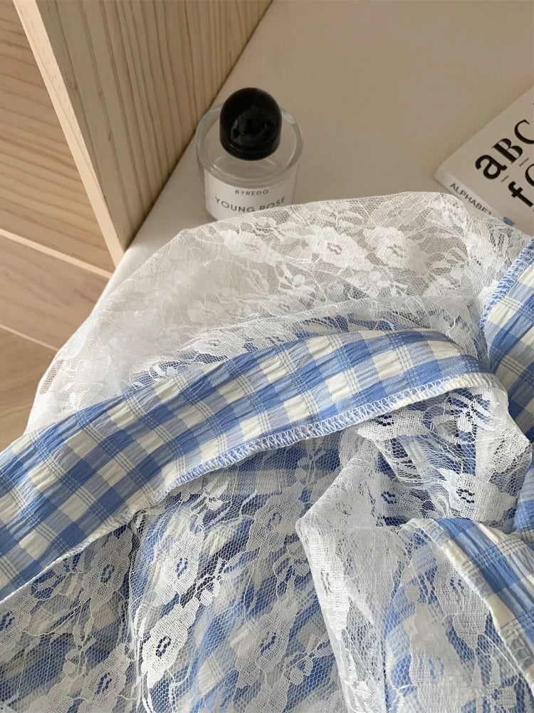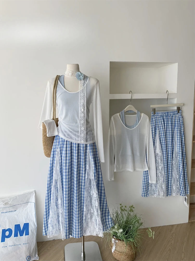 GETADME 한국식 우아하고 독창적인 디자인 3피스 세트 여성 홀터넥 조끼+투명 스모크+롱 레이스 플레드 스커트 캐주얼 패션 스위트 슈트