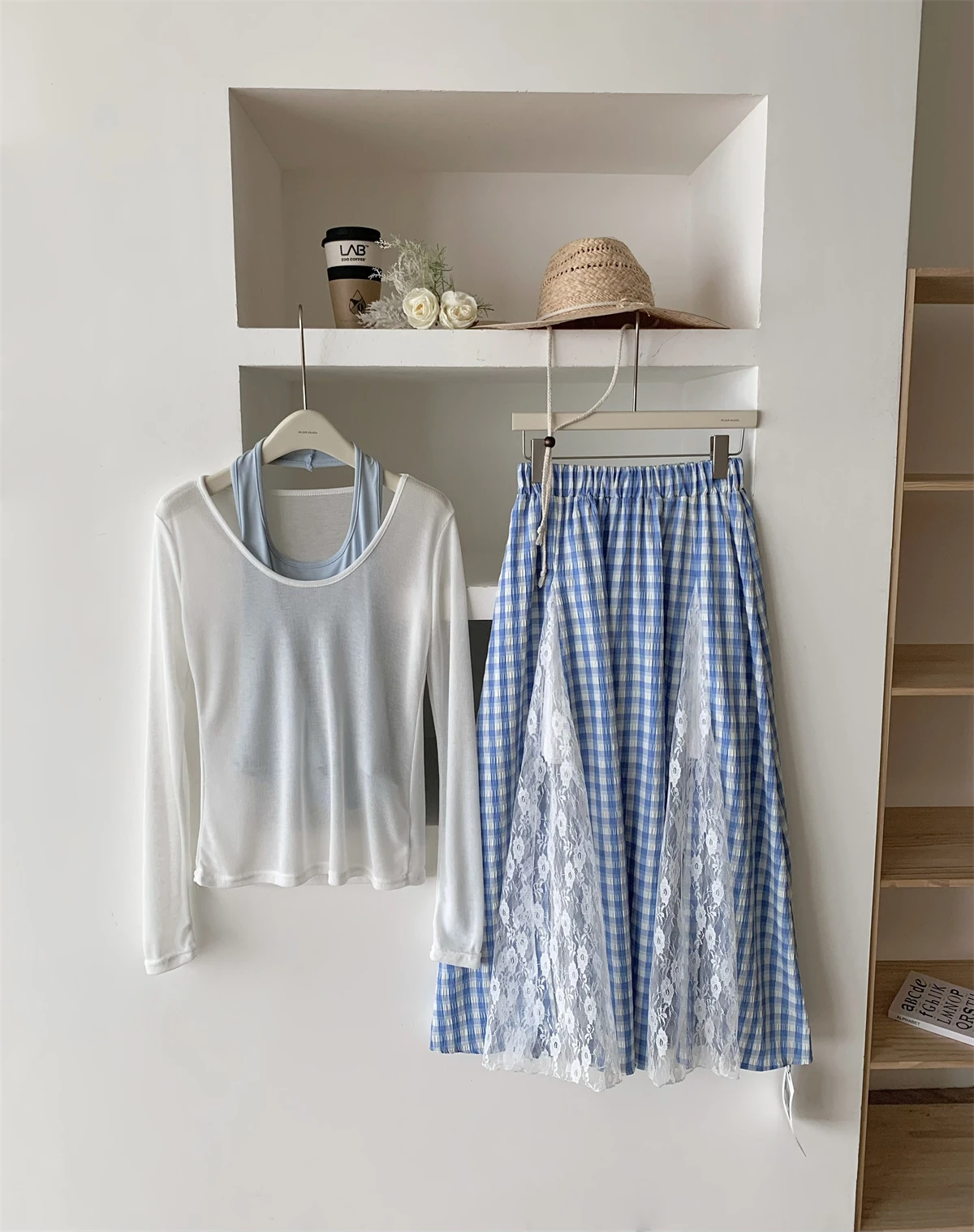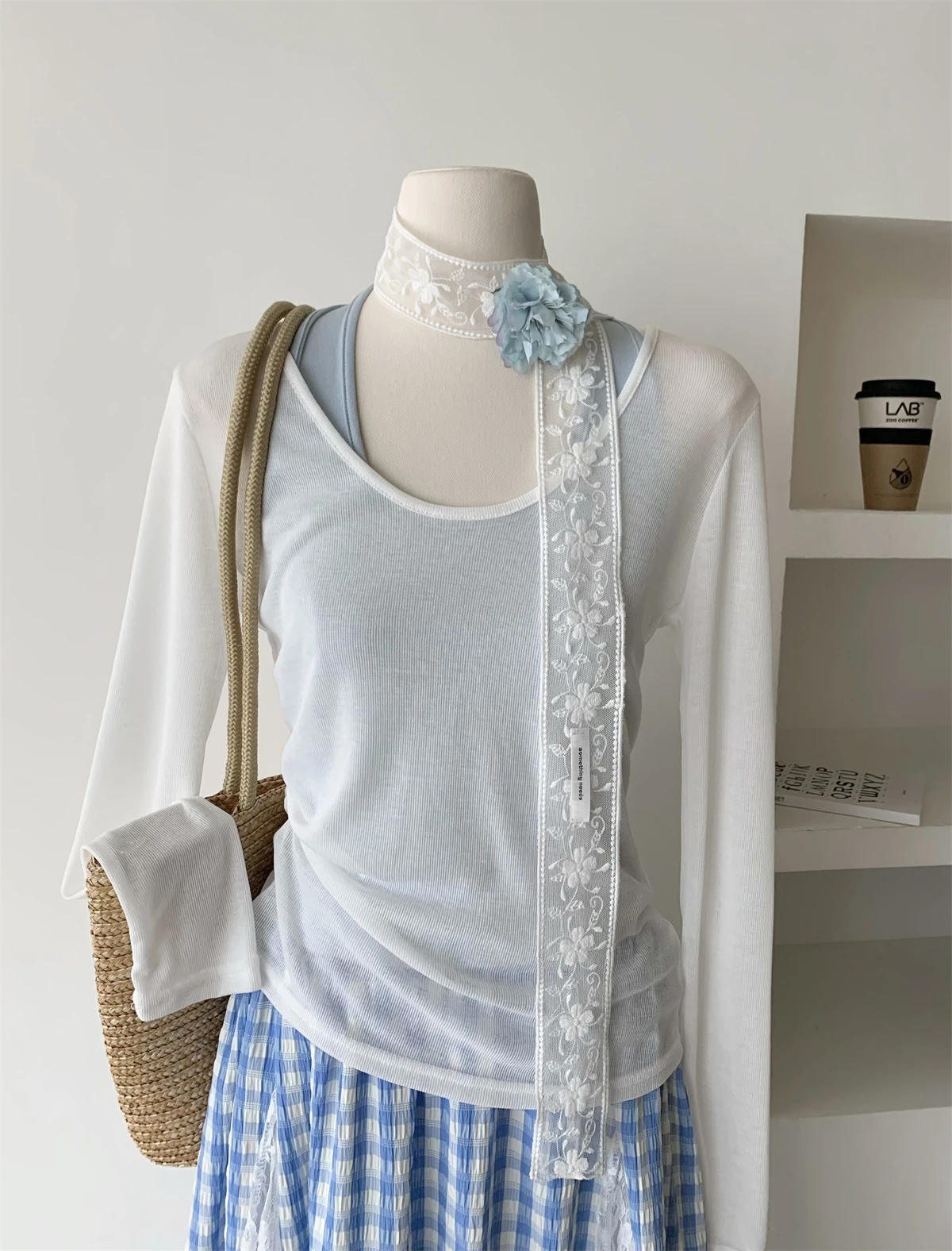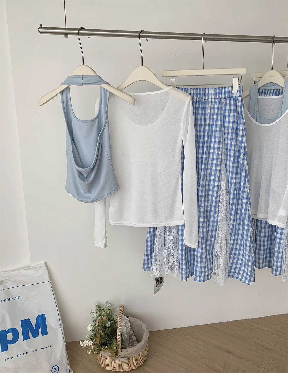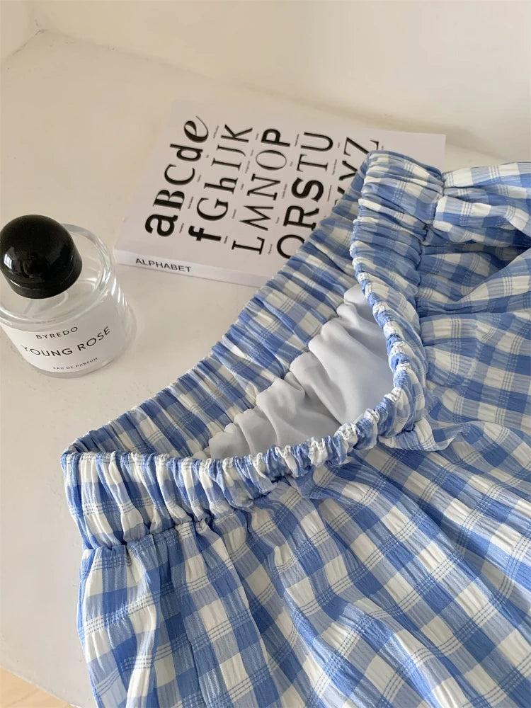 GETADME 한국식 우아하고 독창적인 디자인 3피스 세트 여성 홀터넥 조끼+투명 스모크+롱 레이스 플레드 스커트 캐주얼 패션 스위트 슈트