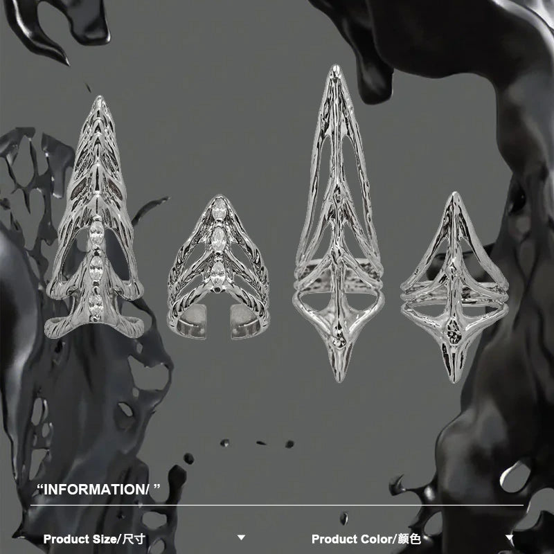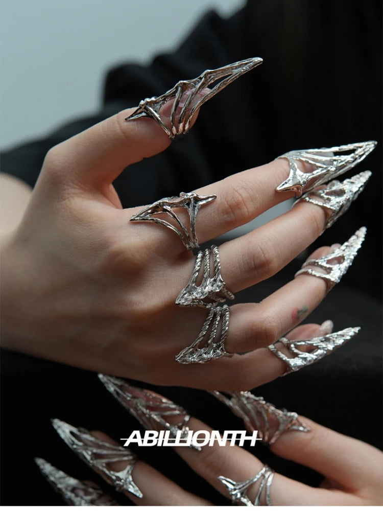 GETADME 펑크 메탈 네일 커버 본 링 고딕 록 머시너리 매니큐어 핑거팁 링 다층 핑거링 코스프레 주얼리 세트 선물