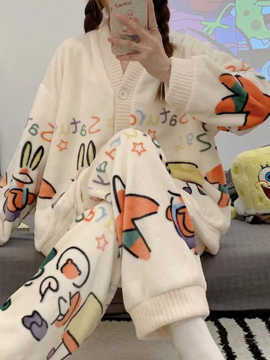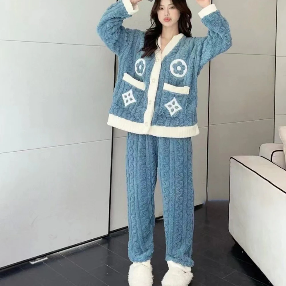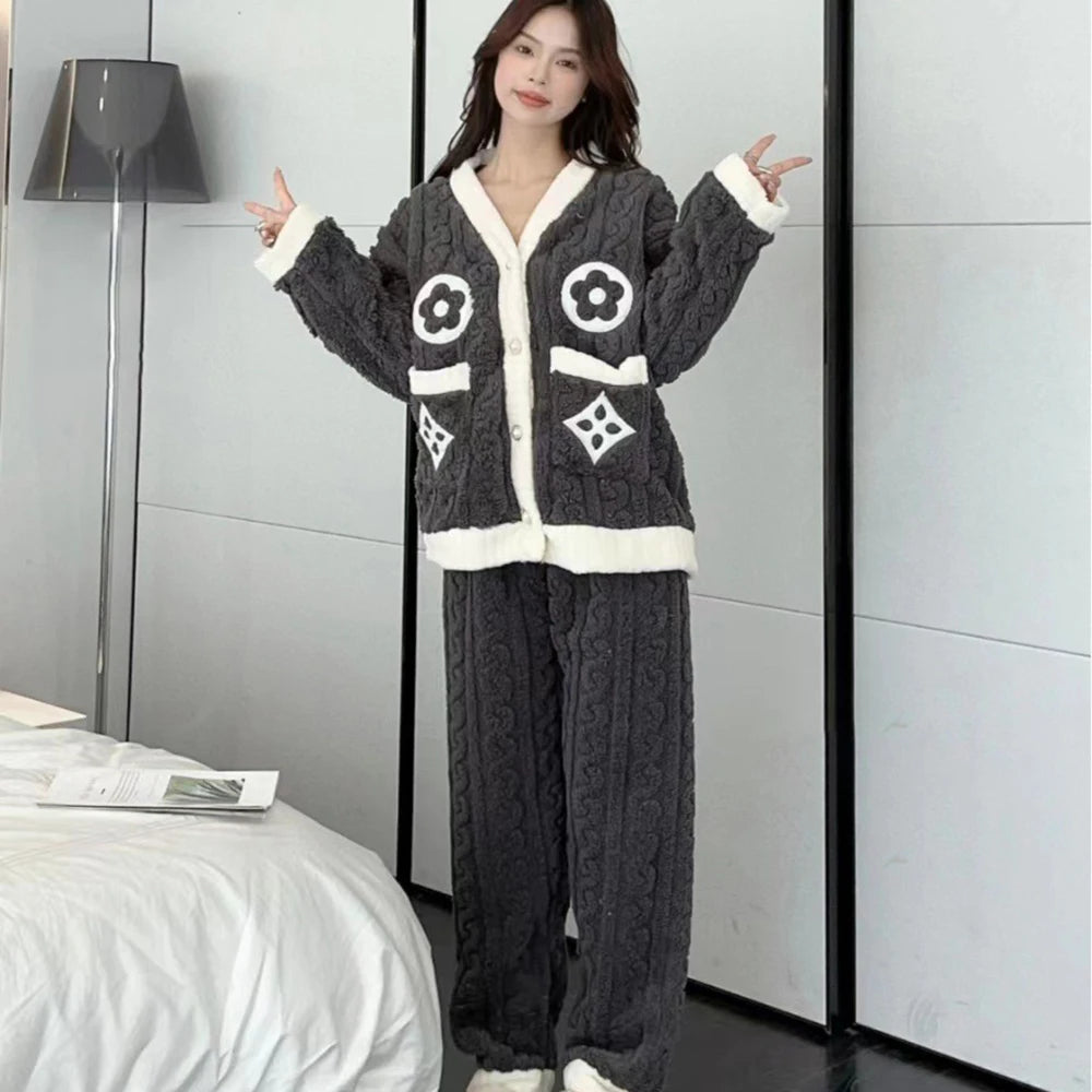 캐주얼한 라운지웨어, 목욕 후 홈 가운, 편안한 잠옷, 여성용 겨울 잠옷으로 완벽한 귀여운 2피스 잠옷 파자마