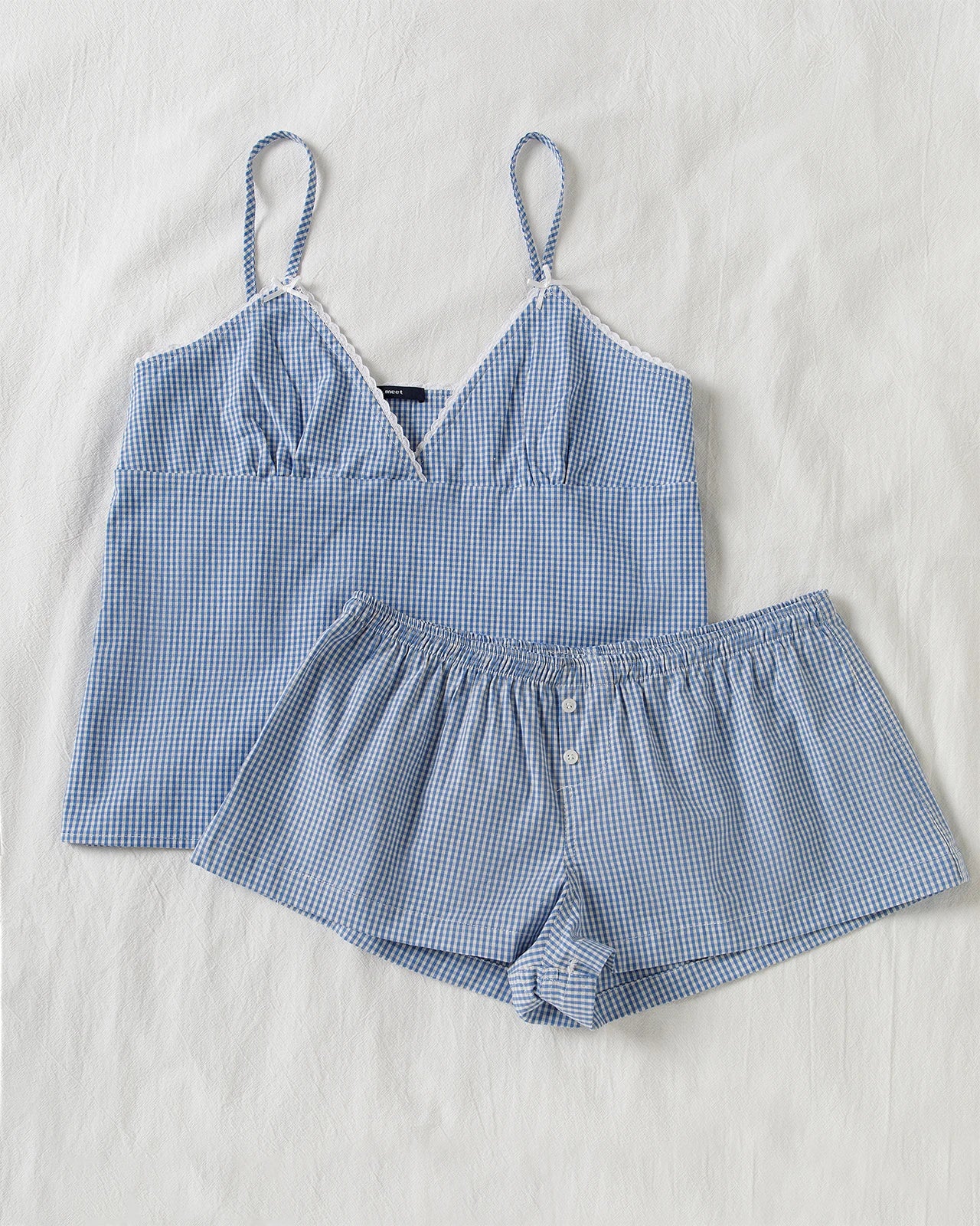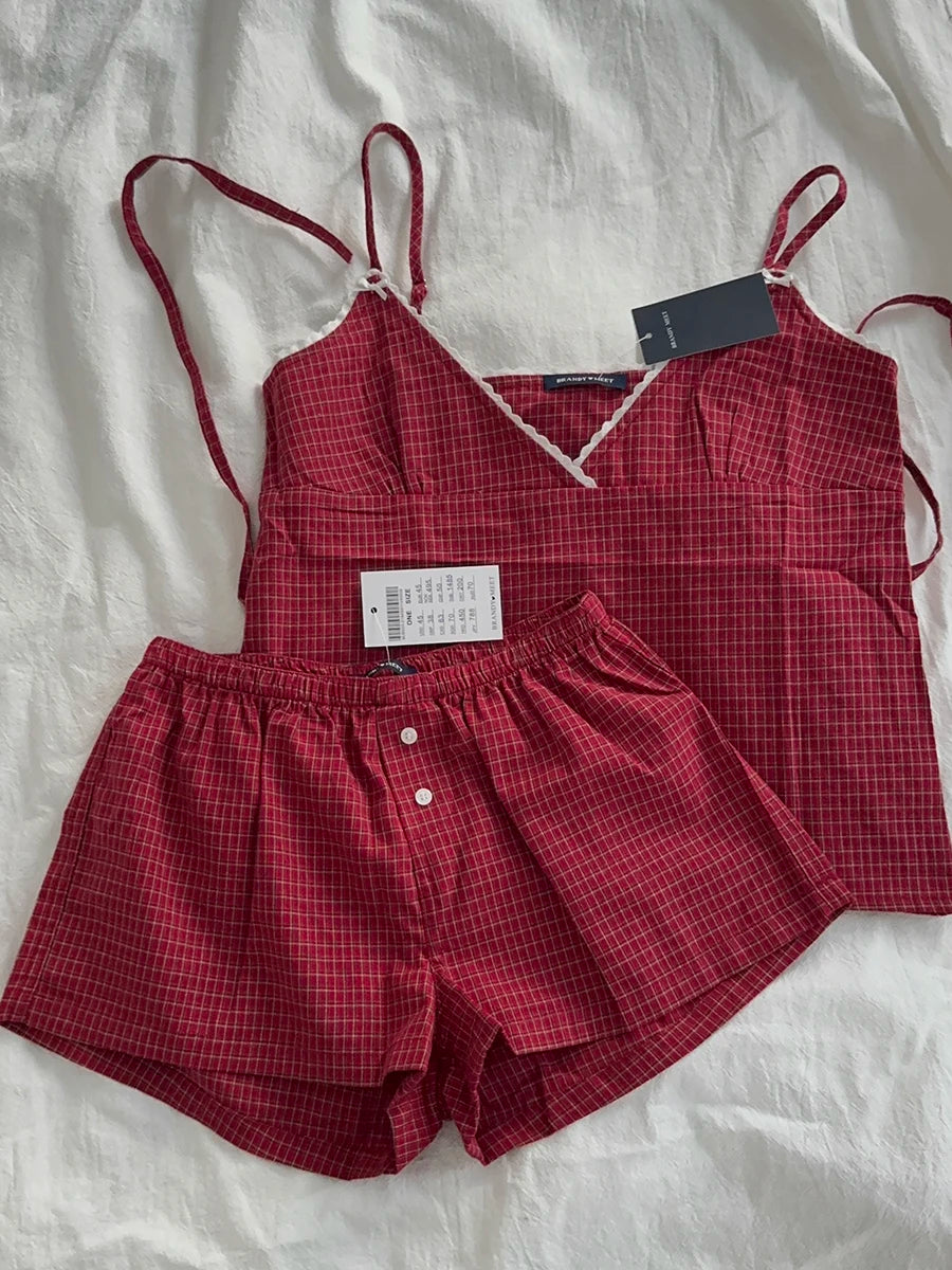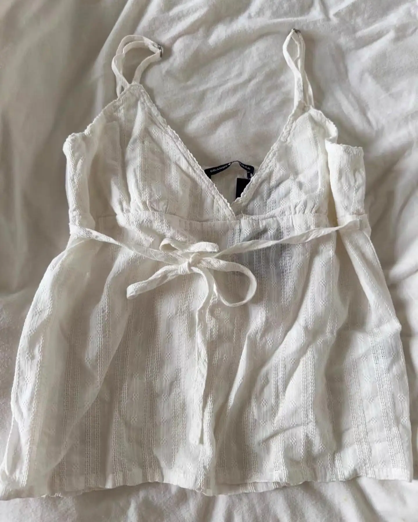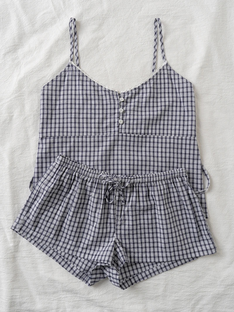 GETADME 화이트 아이릿 홈 코지 2피스 세트 여성 레이스 트림 V넥 레이스업 탱크탑+단추 반바지 여름 스위트 시크 캐주얼 파자마 슈트