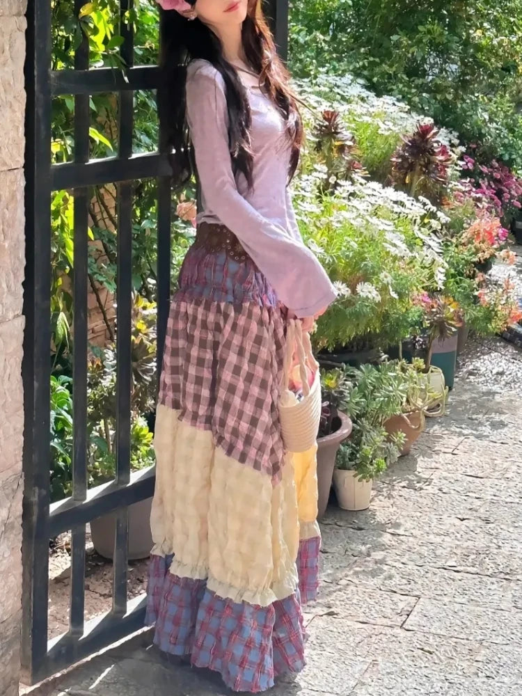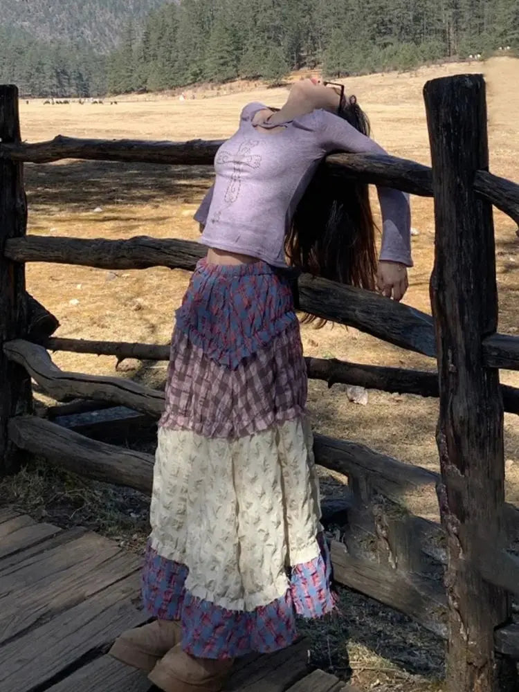 GETADME 겨울 패션 보헤미안 홀리데이 2피스 세트 여성 세트 여성 Y2K 프린팅 수트 여성 홀터넥 긴팔 티셔츠+슬림 A라인 스커트
