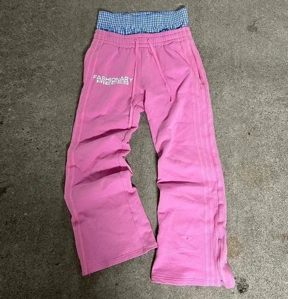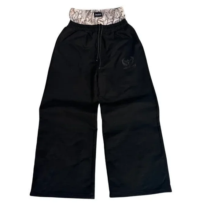 GETADME 여성 캐주얼웨어 팬츠 뉴 웨이브 디자인 하라주쿠 스타일 Y2K 사계절 착용 가능 슬림 스트레이트 핏 고급 스플라이싱 디자인