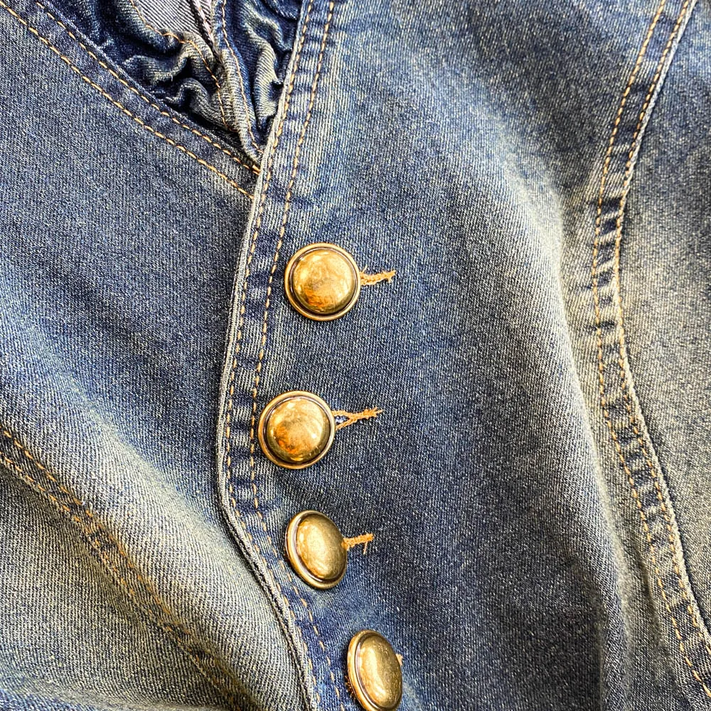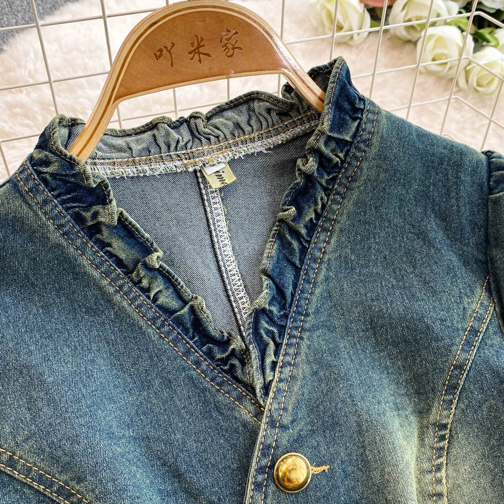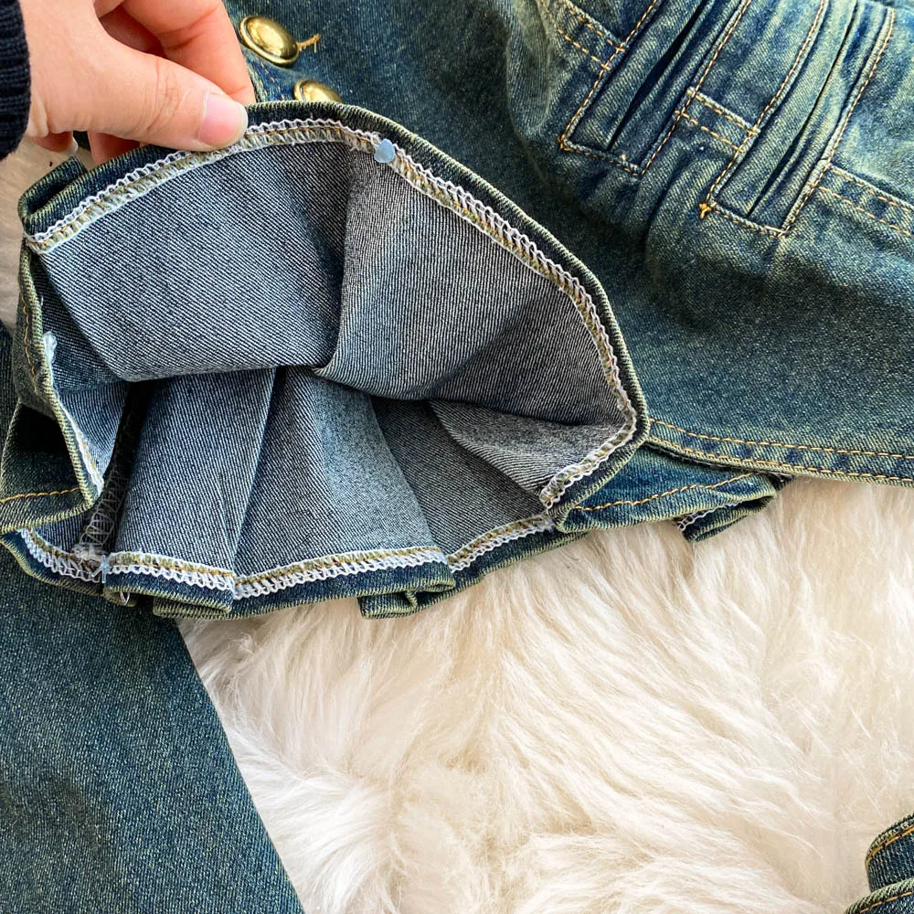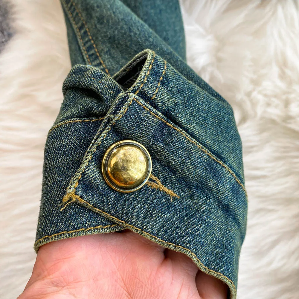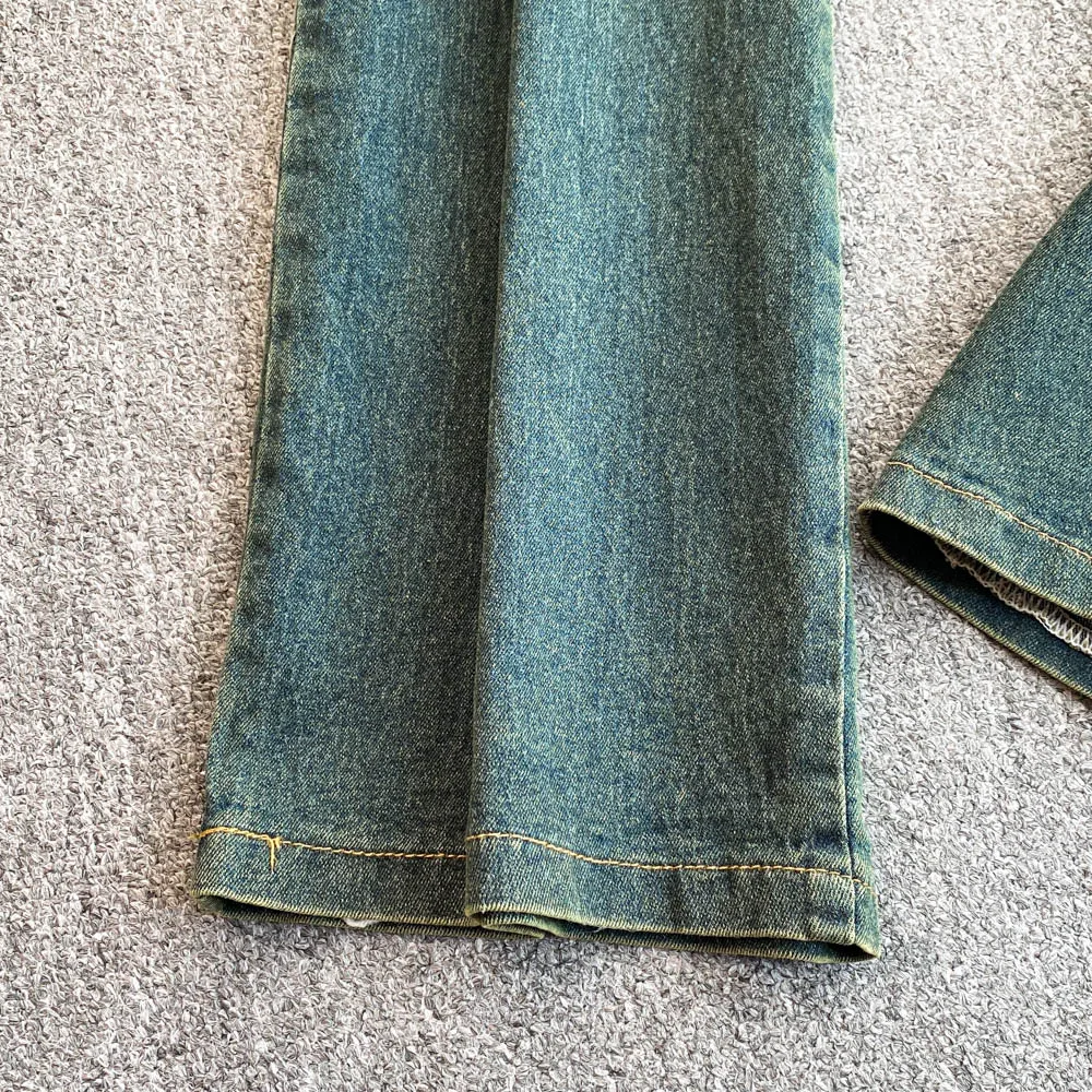 GETADME 여성 패션 데님 롱 팬츠 슈트 봄 V넥 골드 버튼 슬림 코트+하이웨이스트 스트레이트 진 투피스 세트