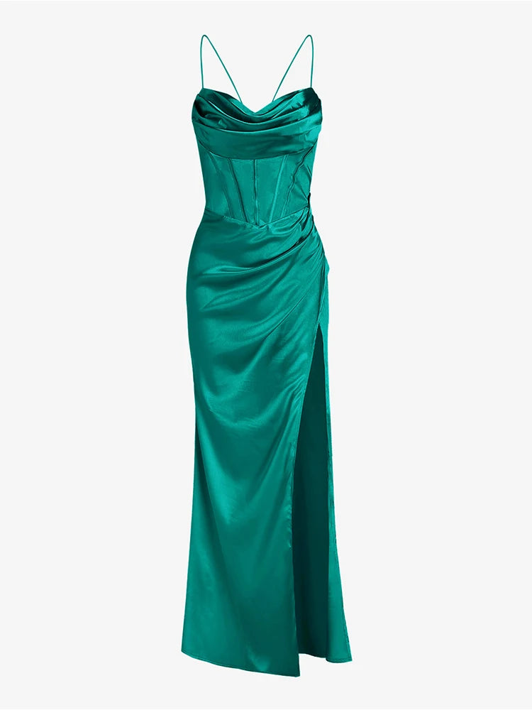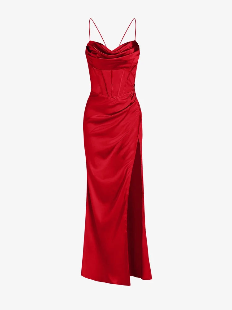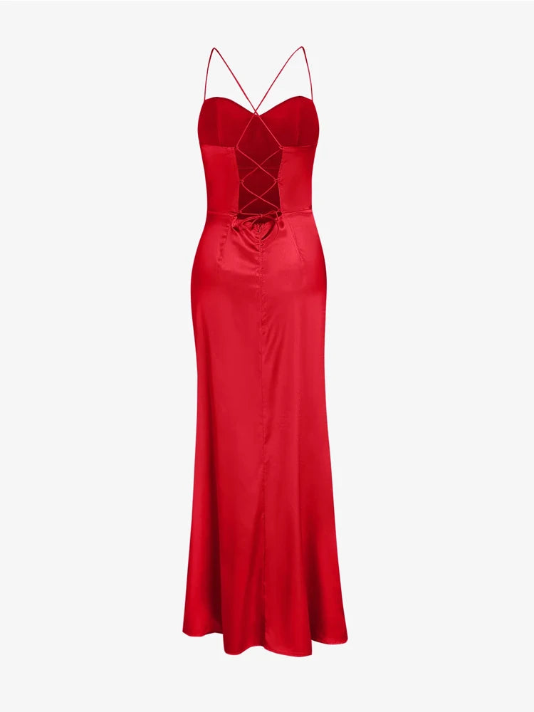 Getadme-여성용 새틴 레이스업 백리스 하이 슬릿 스파게티 스트랩 맥시 슬립 섹시 베가스 드레스 우아한 코르셋 드레스 이브닝 파티 무도회용