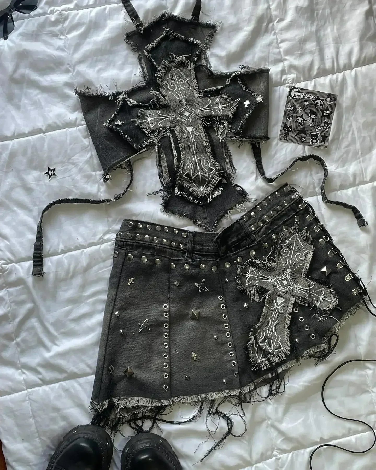 GETADME Y2K 섹시 슬림 탑 팬츠 투피스 세트 여성 하라주쿠 라이트 그레이 타이트 코르셋 탑 하이웨이스트 스웨트 팬츠 가을 겨울 정장