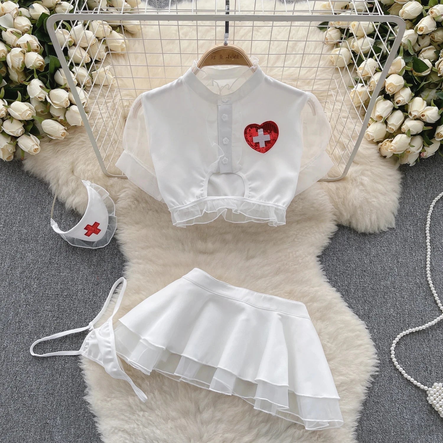 섹시한 레이스 거즈 패치워크 스트랩 바디수트 홀로우 슬리브리스 슬림 백리스 여성 에로틱 란제리 핫스윗 리본 나이트 메이드 코스프레