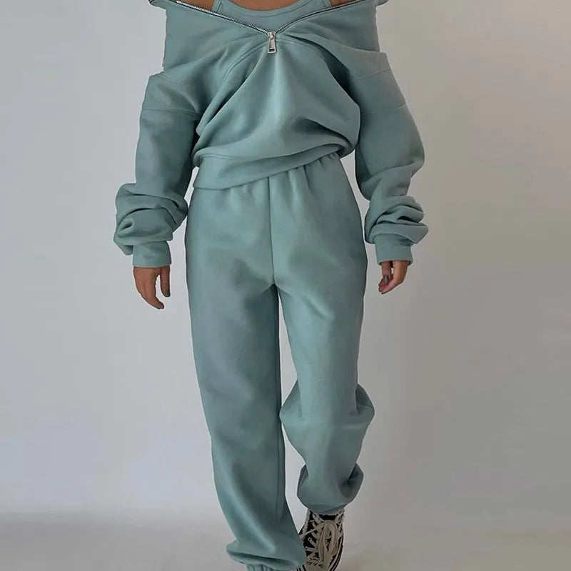 여성 플리스 투피스 세트 가을 겨울 여성 스포츠 따뜻한 정장 캐주얼 오버사이즈 폴로 지퍼 스웨트셔츠 및 바지 트랙수트