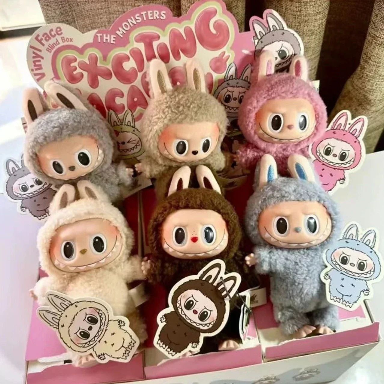 둥근 윤곽과 사랑스러운 표정을 지닌 생동감 넘치는 다채로운 괴물 피규어
