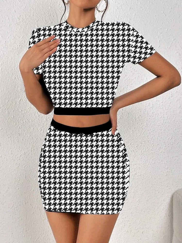 올오버 프린트 엘라스틱 허리 스커트와 티셔츠 투피스 세트 - 레터 패턴 / S