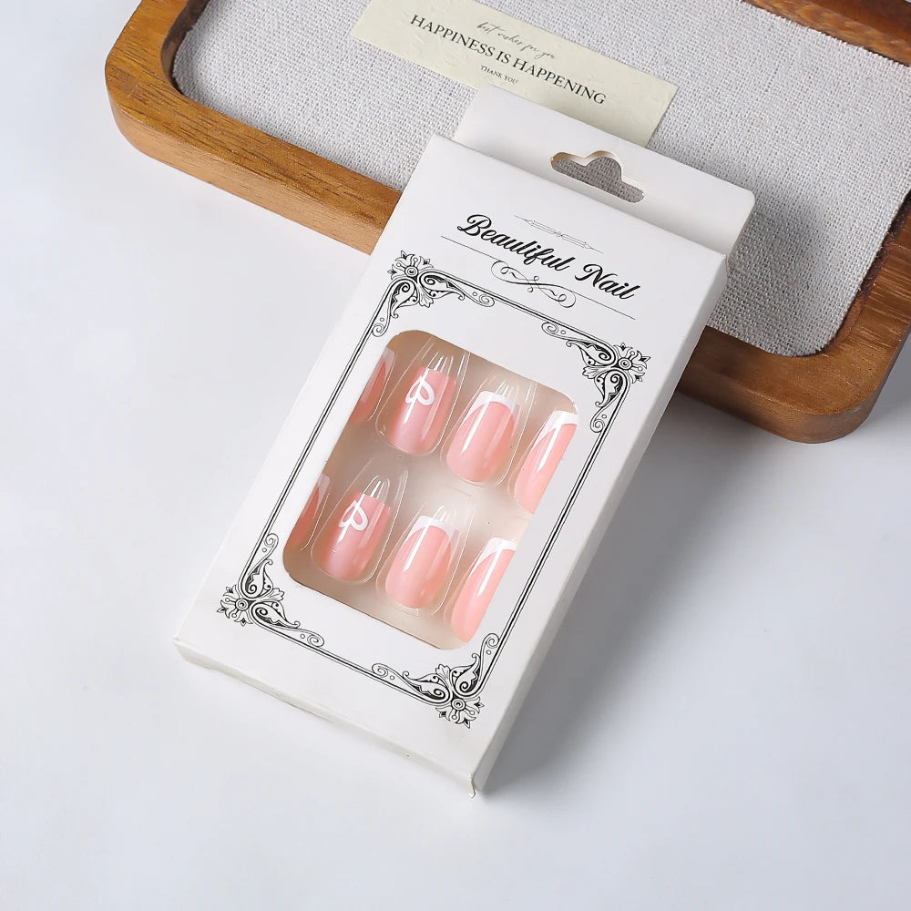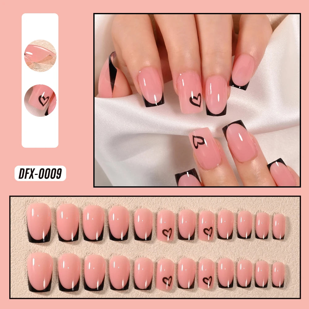 GETADME 24개입 짧은 핑크 프렌치 팁 화이트 러브 하트 가짜 손톱 전체 커버 가짜 손톱 세트 분리형 네일 아트 선물 세트 프레스온 손톱