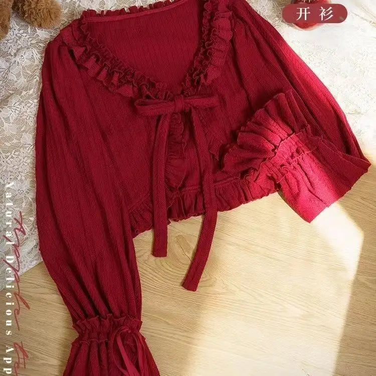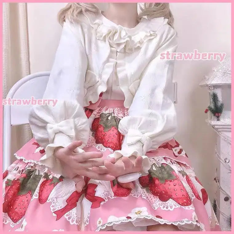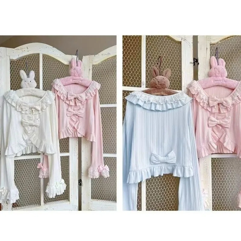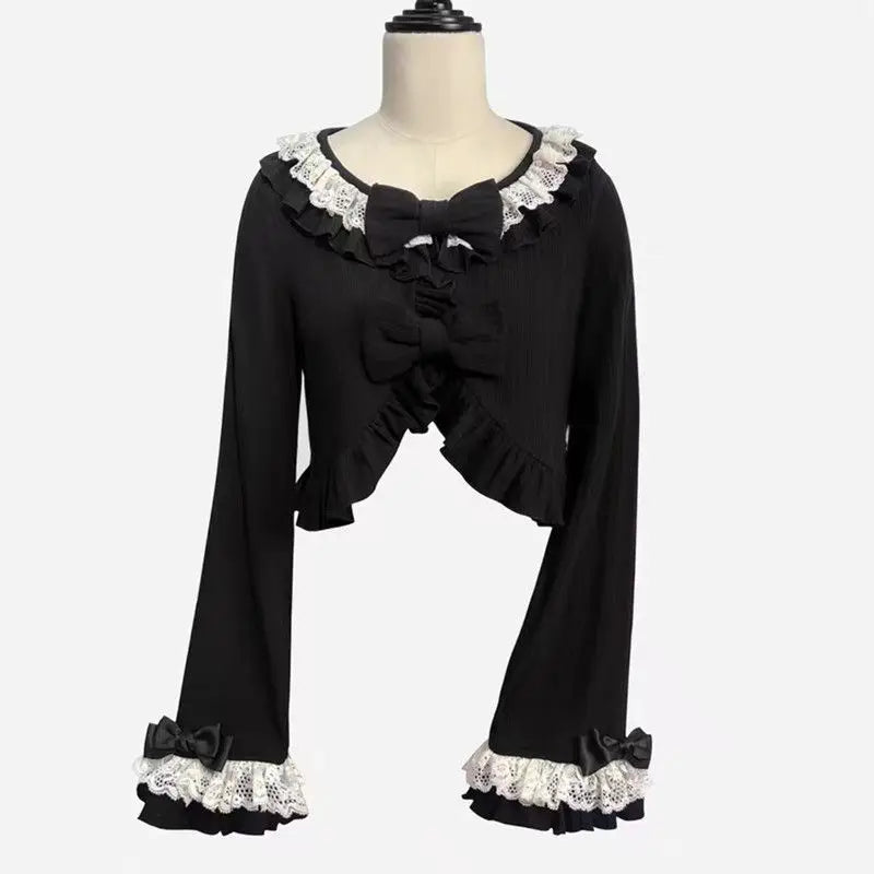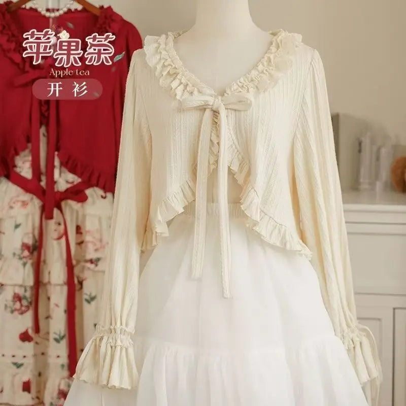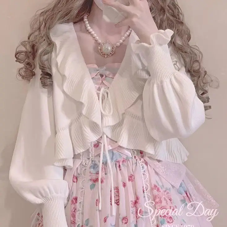 GETADME 카와이 로리타 크롭 니트 가디건, 하트 레이스 오픈워크 스프링 커버업, 일본식 빈티지 스타일 자외선 차단 스웨터
