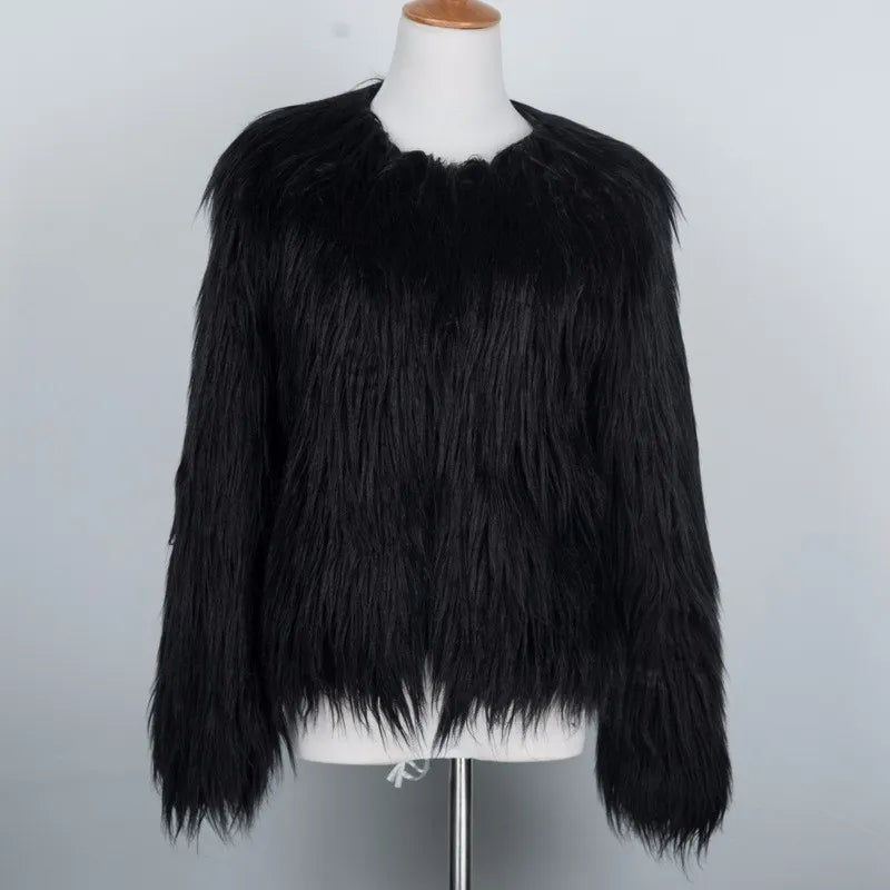 Getadme-Winter New Faux Fur Coat Women Jacket Female Fuzzy Fur Coat Winter Thick Warm Fluffy Artificial Fur Casual Jacket Outerwear