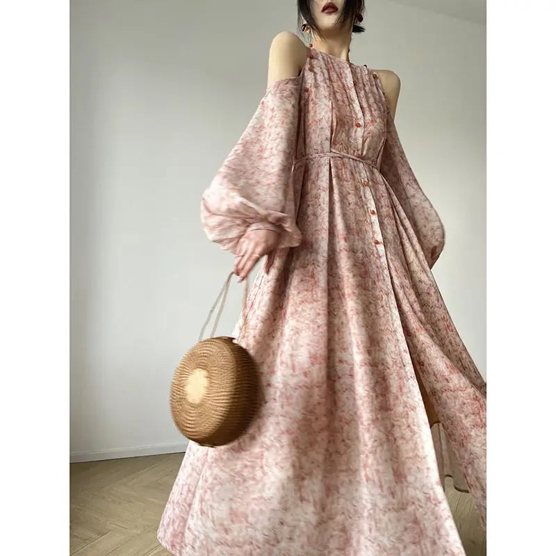 Getadme-Spring Beach Elegant Floral Midi Dress Woman Casual French Style Even Party Dress Fairy One Piece Dress Korean Fashion