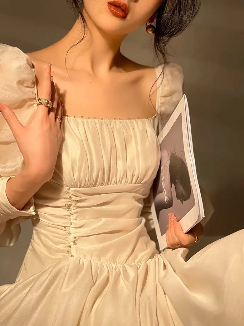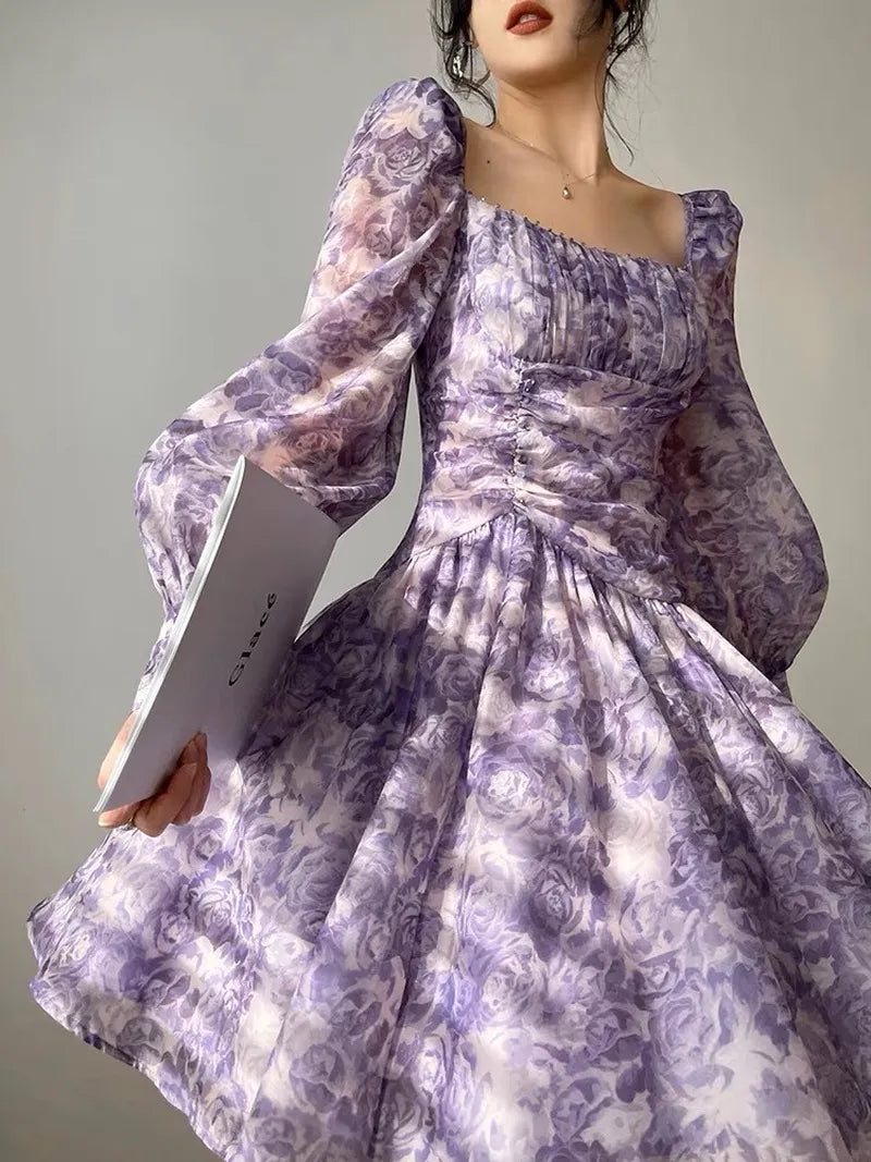 Getadme-Chiffon Print Vintage Elegant Dress Women Summer Lantern Sleeve Ladies Korean Style Causal Evening Party Mini Dress