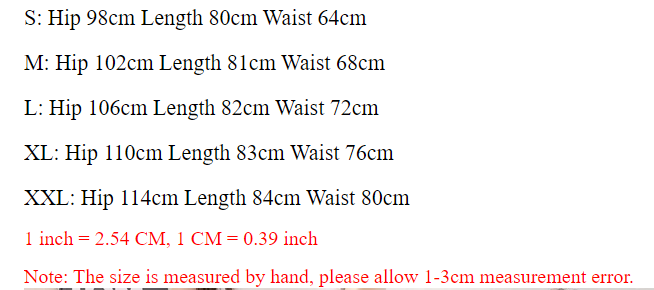 S: Hip 98cm Length 80cm Waist 64cm