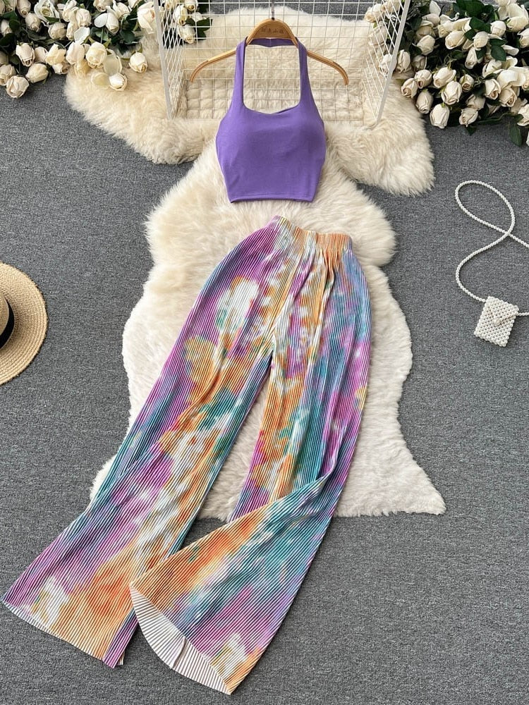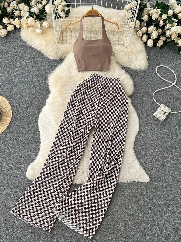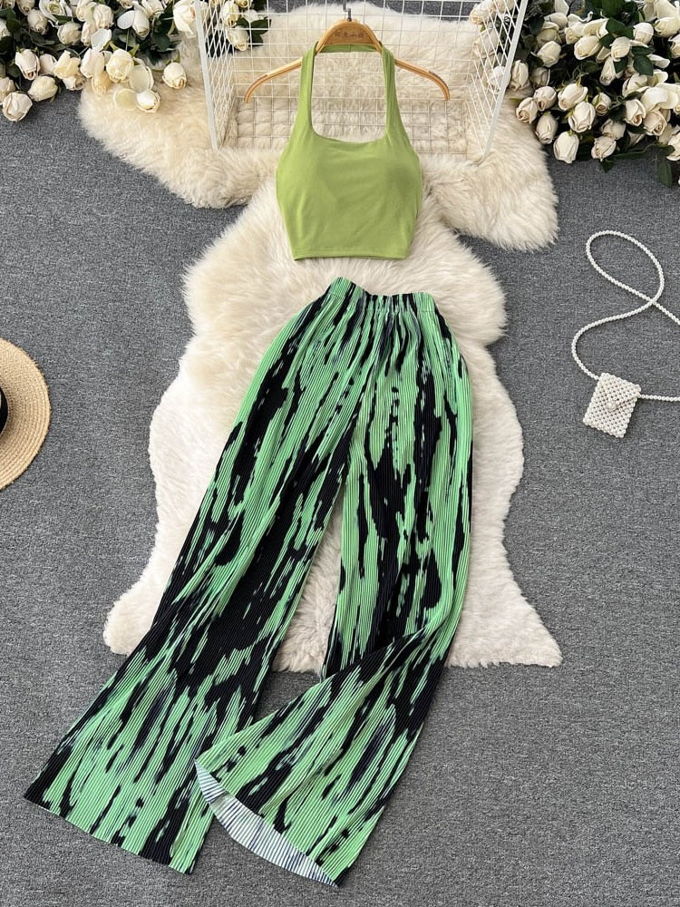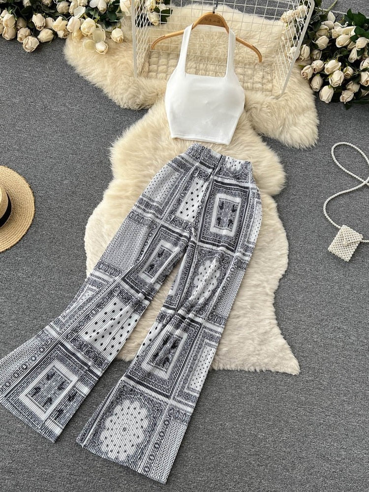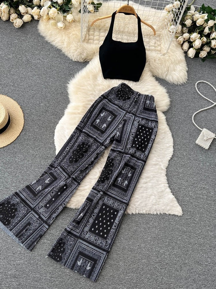 Getadme Fashion New Women Summer Sexy Pants Set Halter Tank Tops Wide-leg Long Pantsuit Female Slim Vacation Two Piece Sets