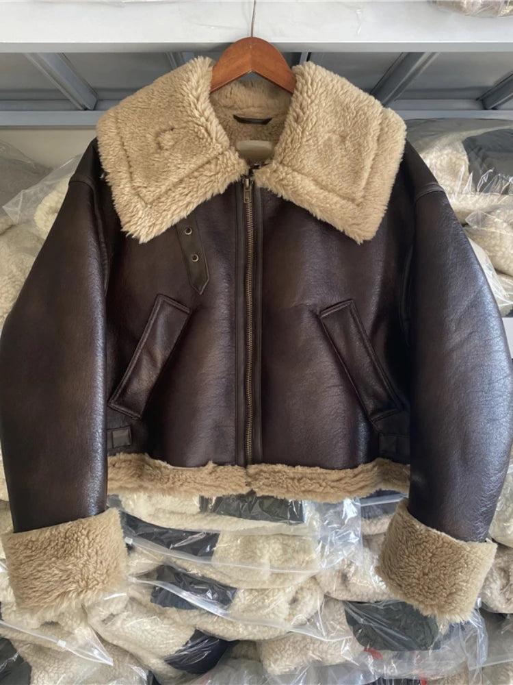 Getadme-Fitaylor New Winter Moto Biker Thick Short Coat Women Streetwear Lapel Zipper Faux Lamb Leather Jacket Lady Warm Pu Outwear