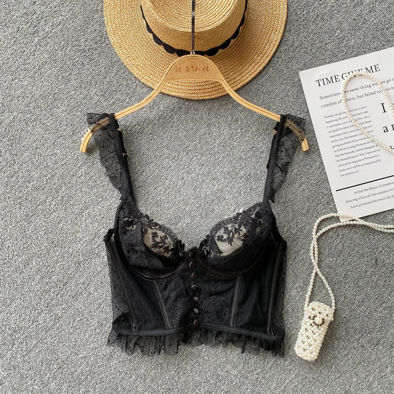 Getadme-French Chic Sexy Woman Sleeveless Skinny Backless Female Corset Camis Lace Sheer Spaghetti Strap Hotsweet Tank Tops Dropshipping