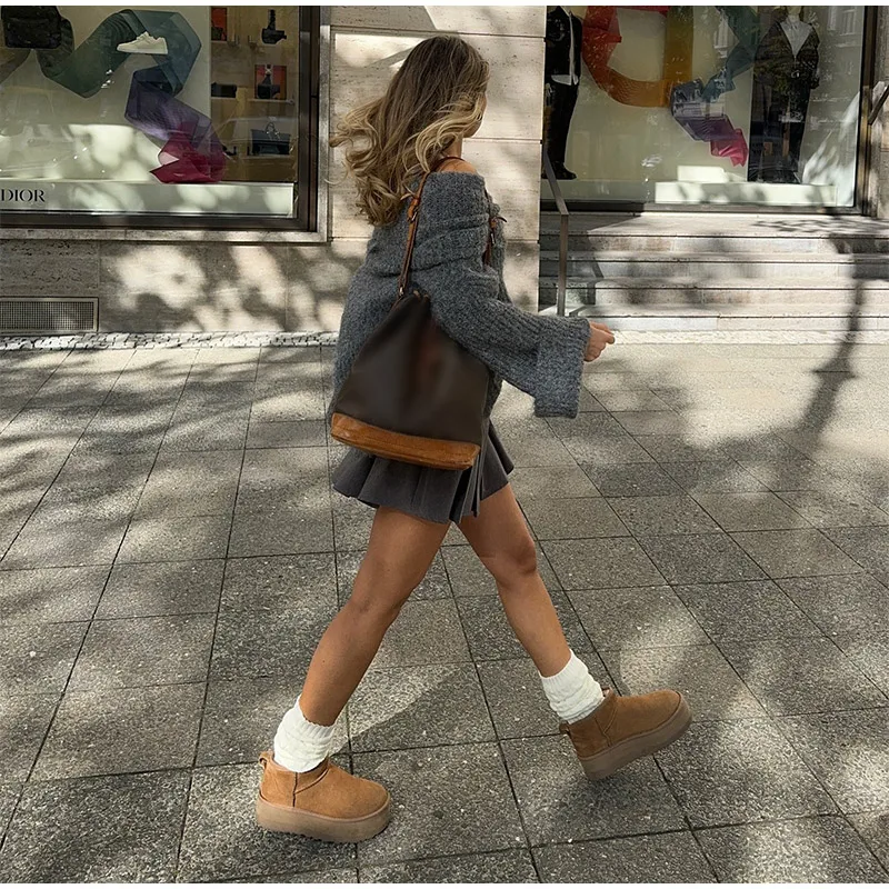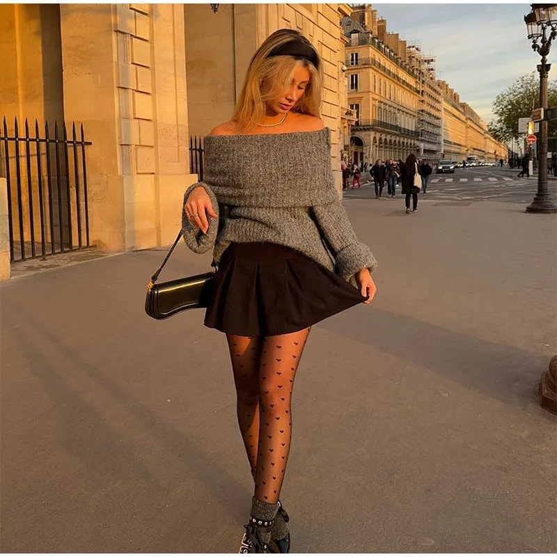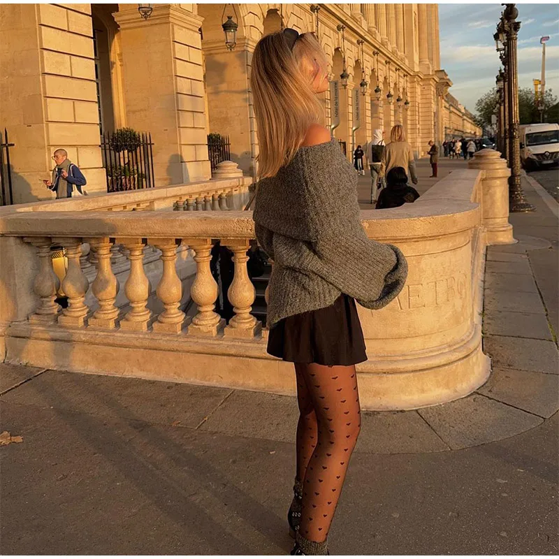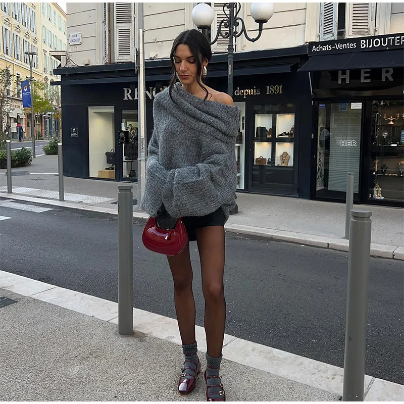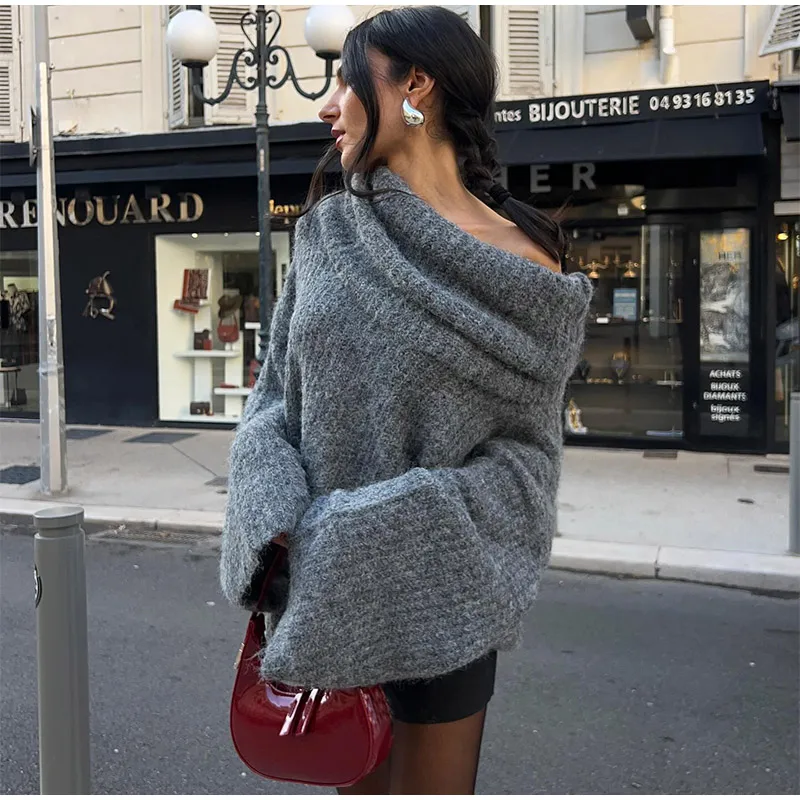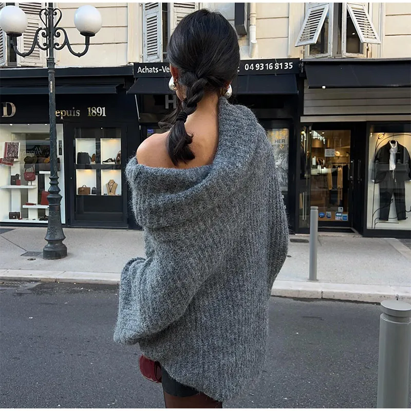 Model Number : 2024 Elegant Grey Off Shoulder Women's Loose Sweater