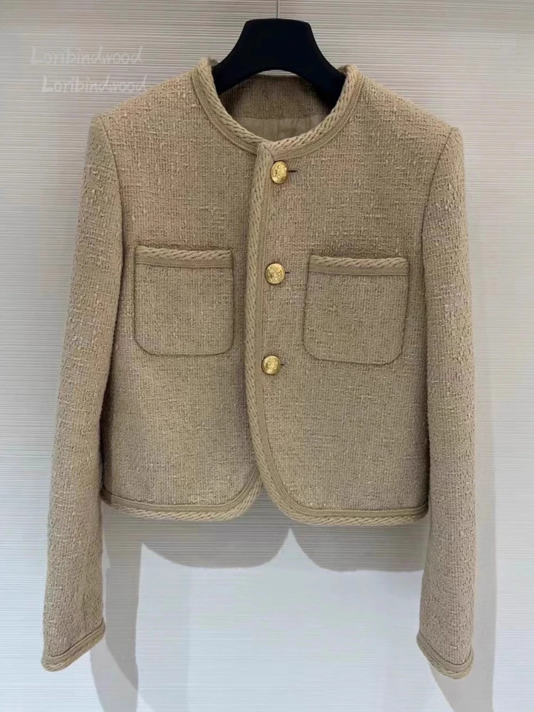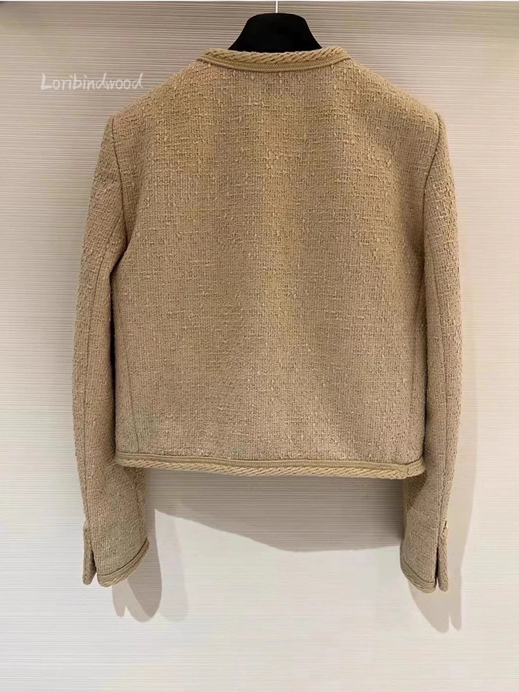 GETADME 2024 New Camel Color Small Fragrance Coat Women French High-grade Tweed Short Jacket Fashion Casual Slim Jacket Women