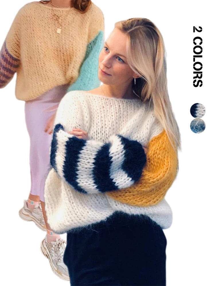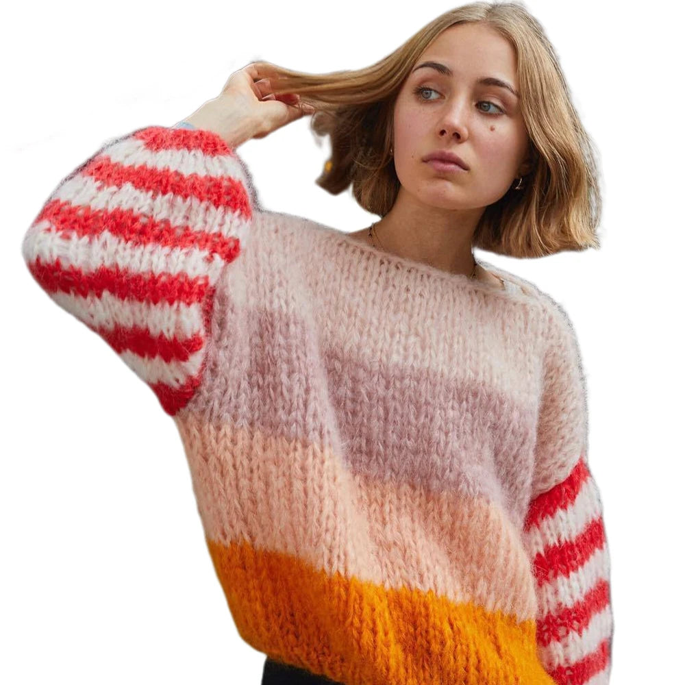 2024 Autumn Winter Women Rainbow Sweaters Fashion Famale Pullover Round Neck Loose Hollow Out Sweater Casual knitted Jumper Tops