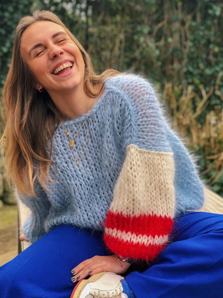 GETADME 2025 Autumn Winter Women Rainbow Sweaters Fashion Famale Pullover Round Neck Loose Hollow Out Sweater Casual knitted Jumper Tops