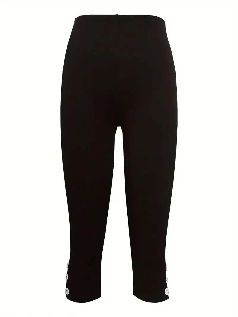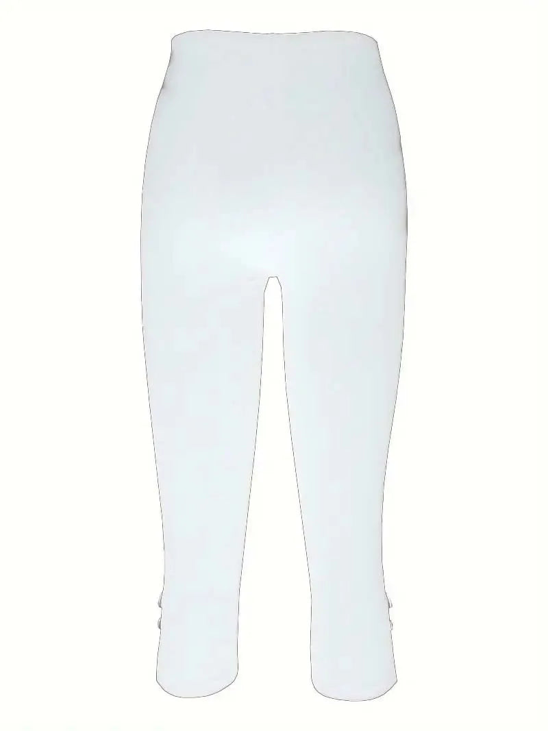 GETADME 2025 Cross border Summer Mid waist Elastic Solid Color Seven point Pants Tight Fashion Sexy Button up Casual Pants for Women