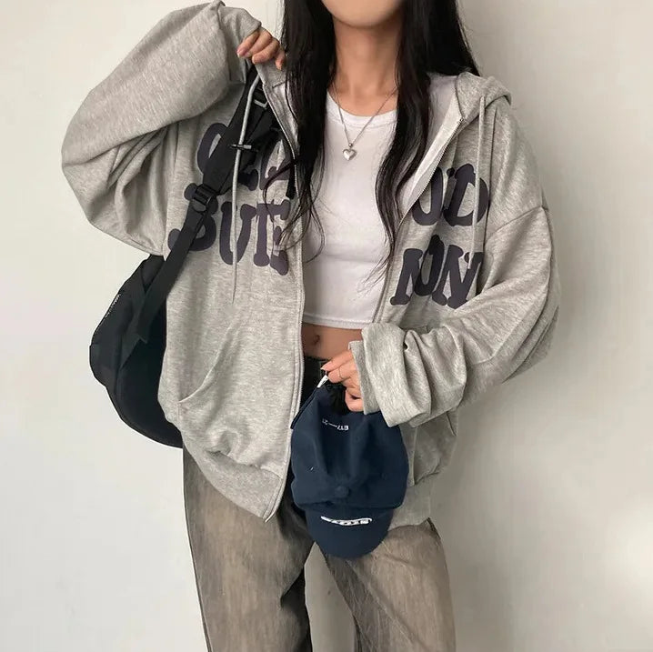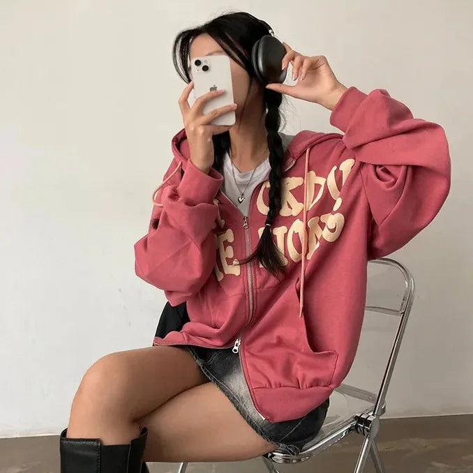 GETADME 2025 Fall Loose Women Sweatshirt Hoodie Clothes Y2k Hoodie New Hoodies Women High Street Harajuku Retro Hip Hop Zip Up Hoodie