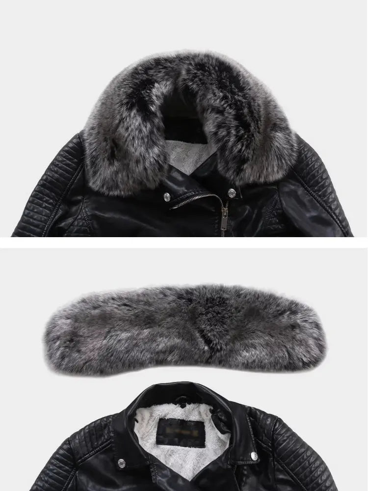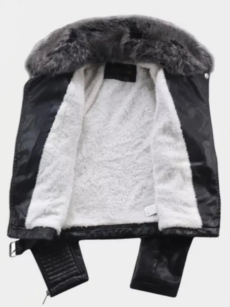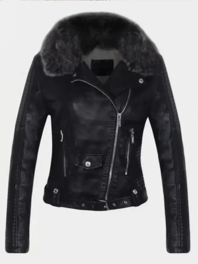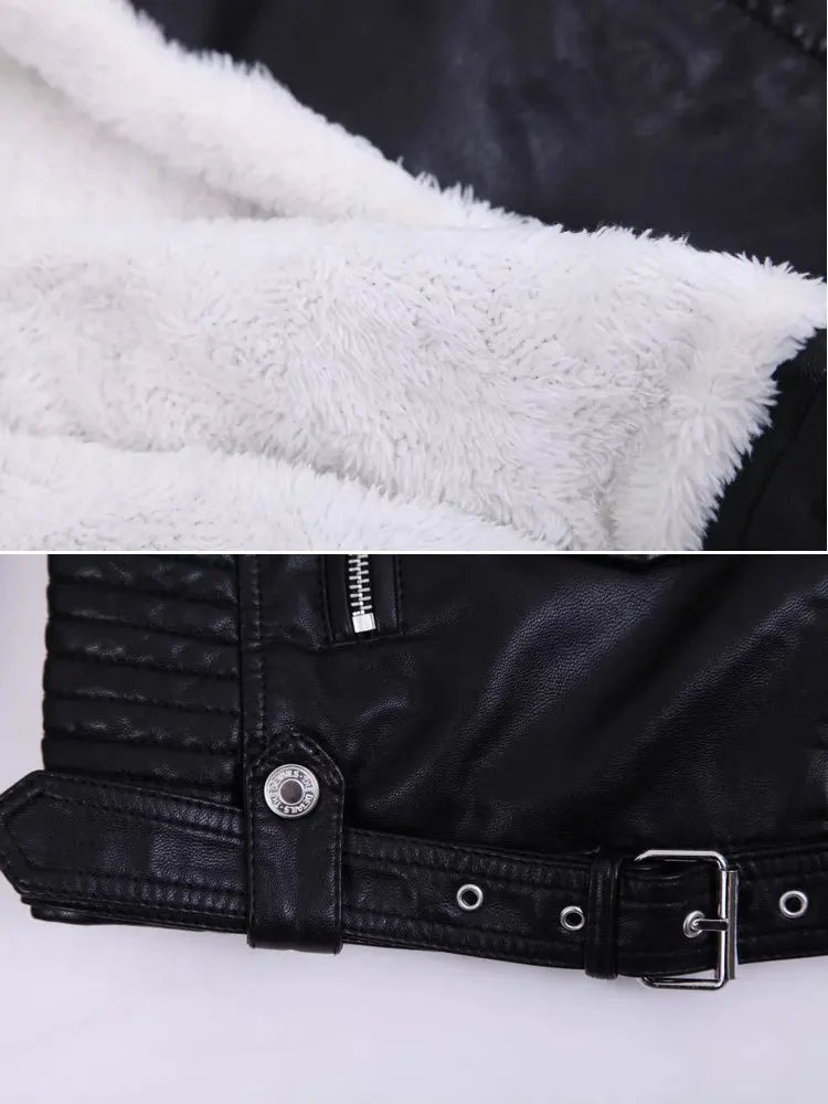 GETADME 2025 Hot Fashion Women New Winter Warm Faux Leather Jackets with Fur Collar Belt Ladies Thick Black Moto & Biker Outerwear Coats