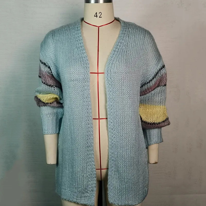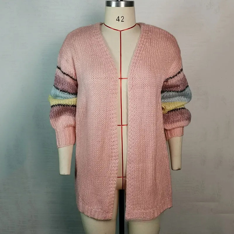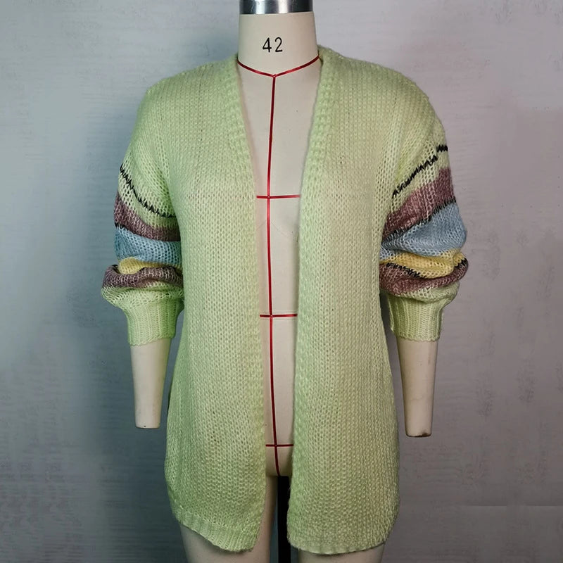 GETADME 2025 New Fashion Striped Mohair Casual Sweater Women Autumn and Winter Knitted Cardigan Jacket Women Cardigan