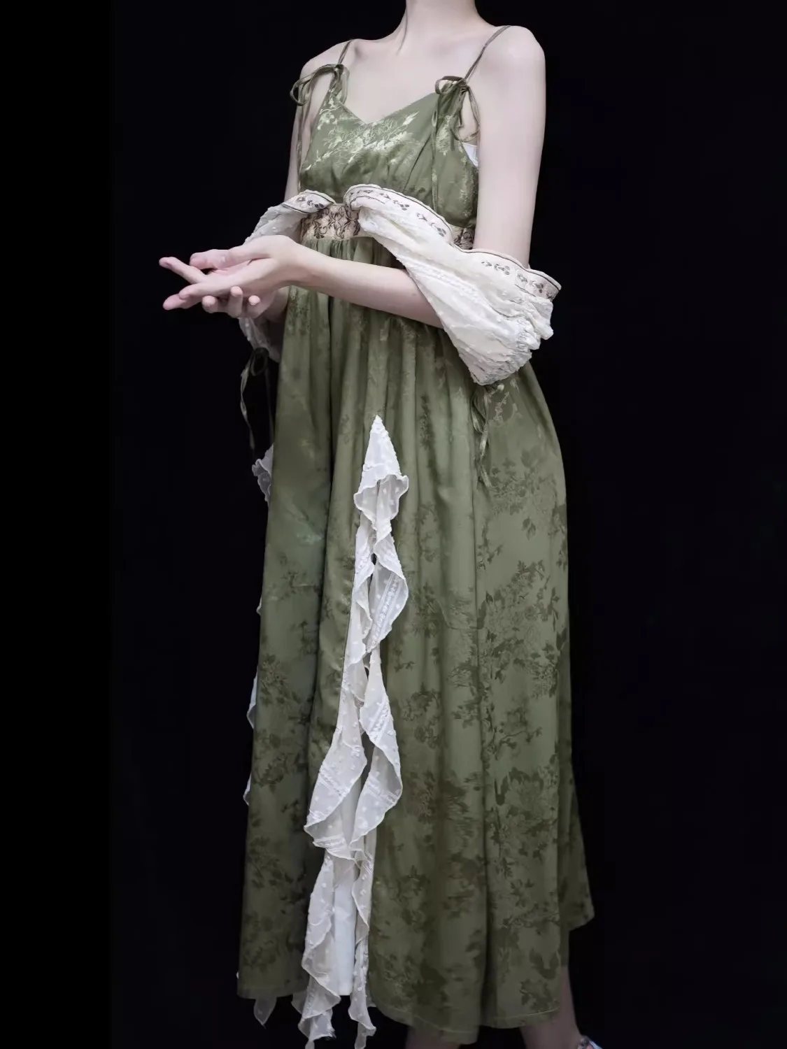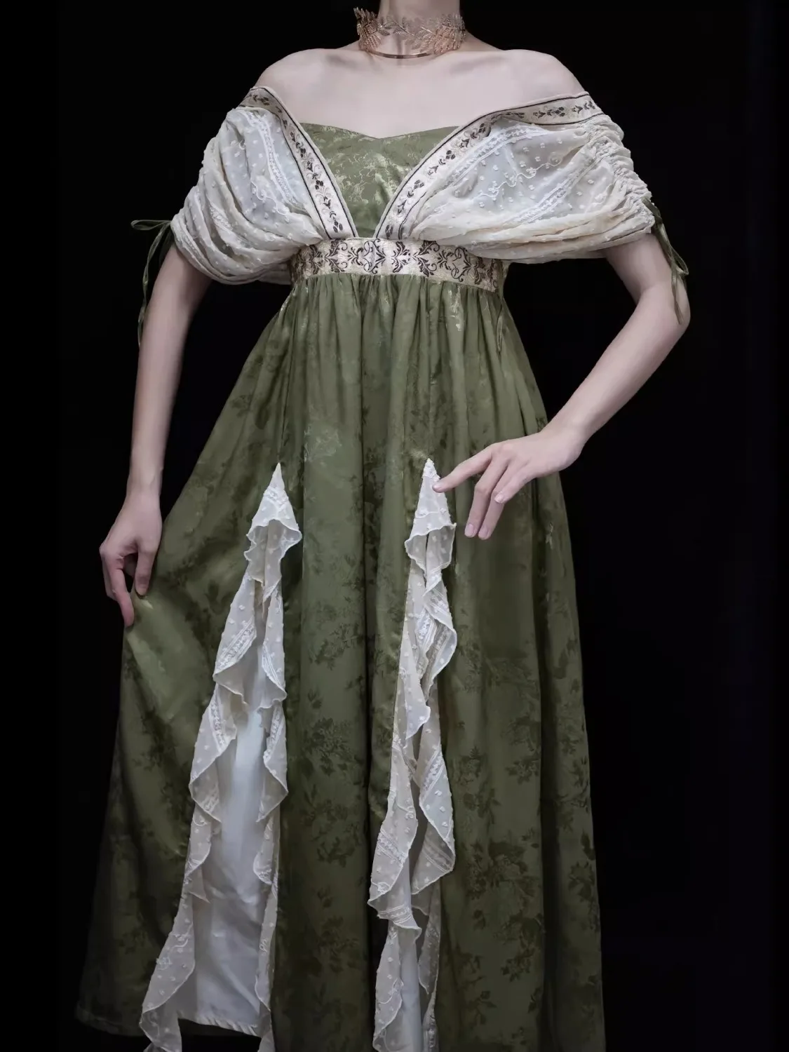 GETADME 2025 New Lolita Retro Jacquard Elegant Dress Y2K Vintage Cosplay Green Daily Temperament Gorgeous Elegant Queen Princess Dresses
