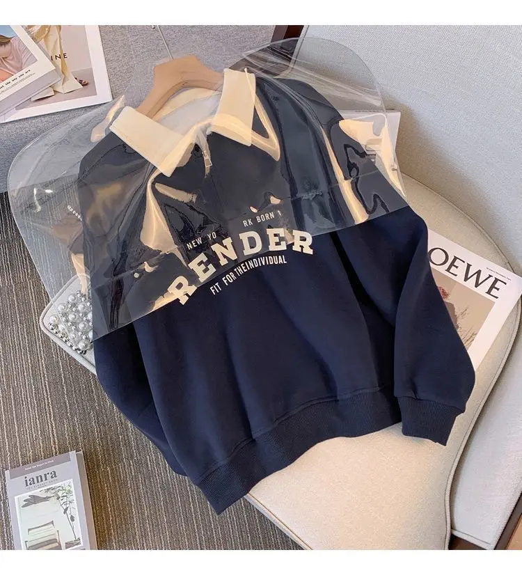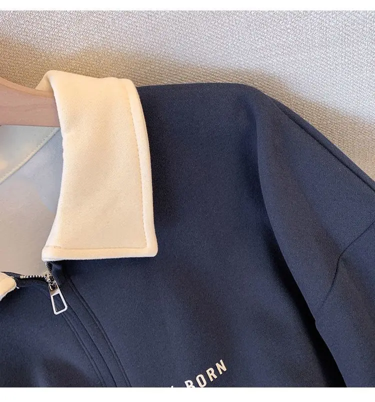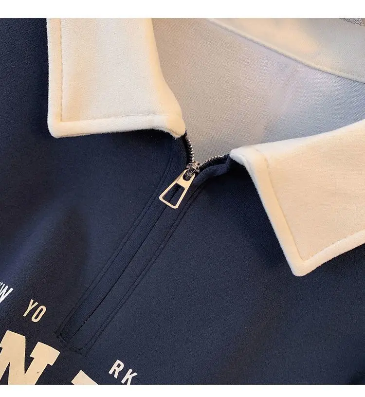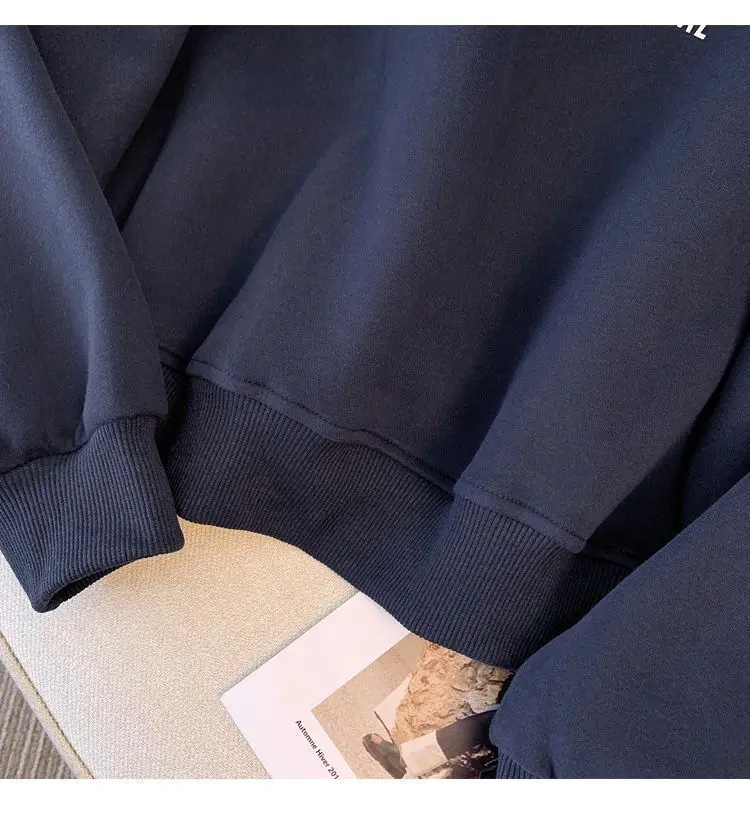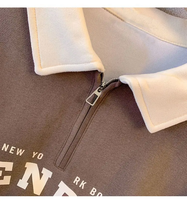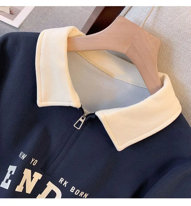 GETADME 2025 New Spring and Autumn American Retro Loose Relaxed Half Zipper Polo Neck Letter Print Oversized Long Sleeve Women's Sweater