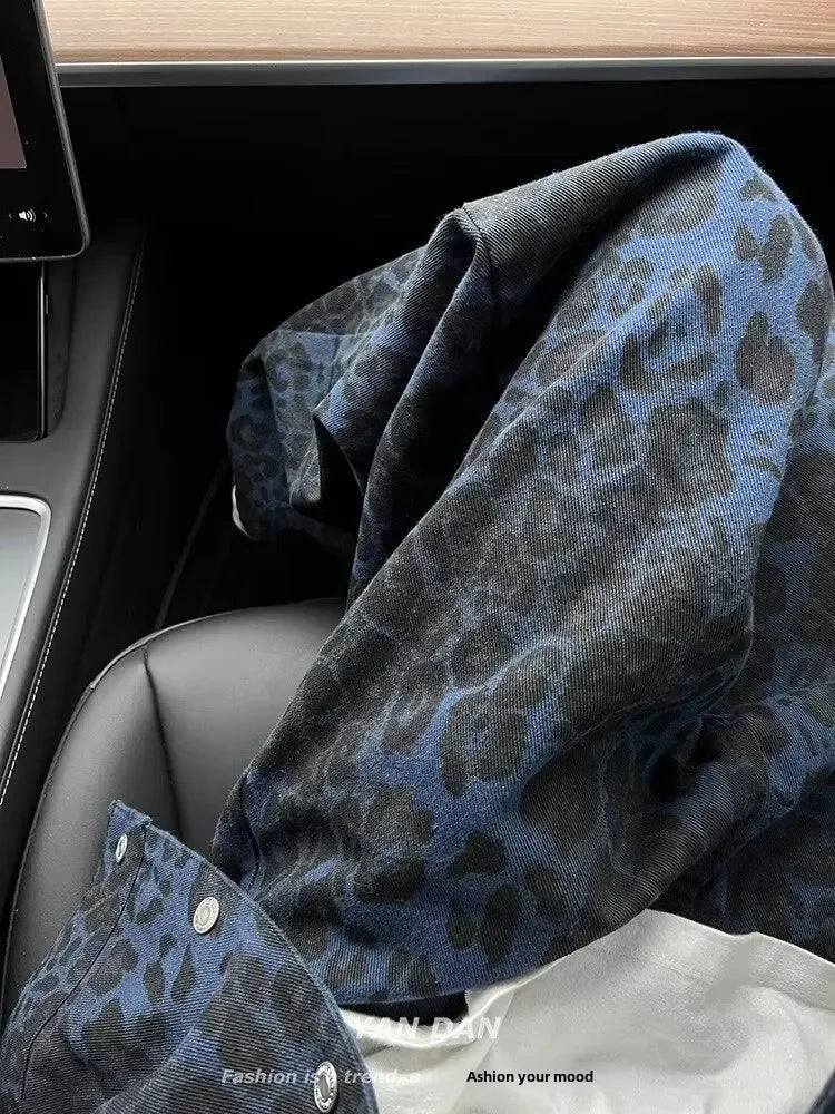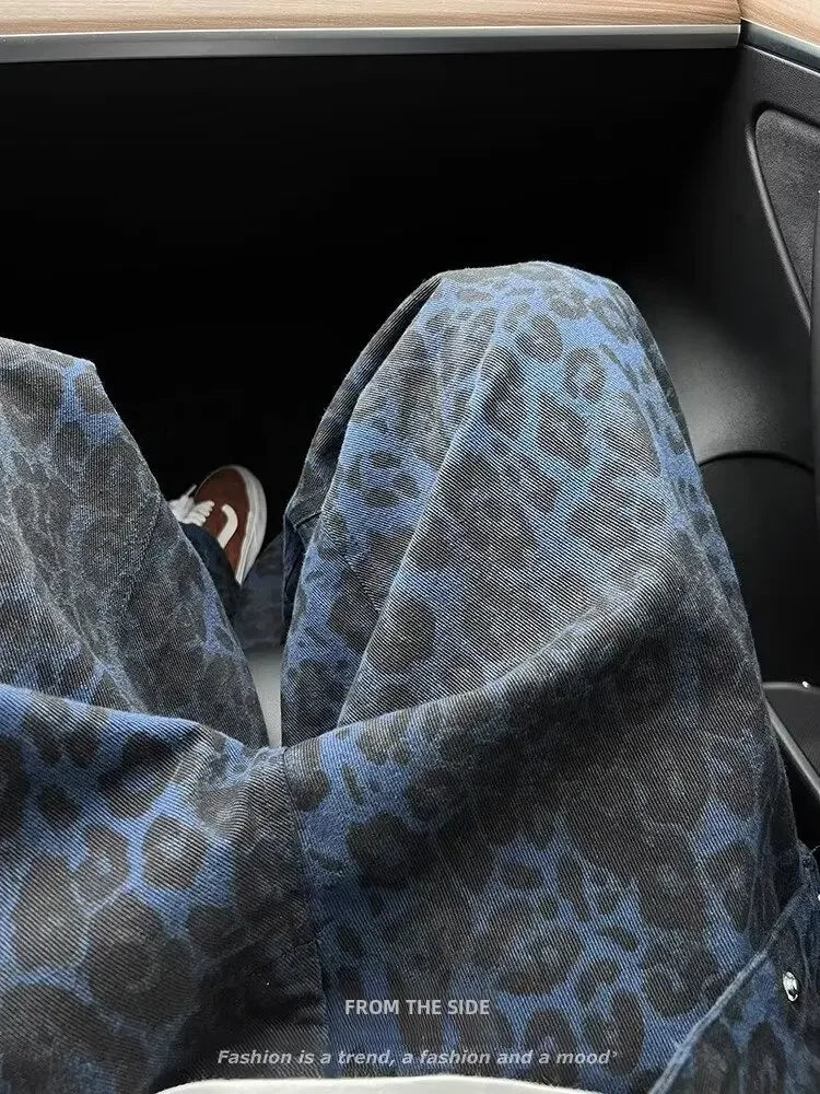 GETADME 2025 Spring New Style American Vintage Leopard Print High-end Feel Loose-fit Straight-leg Wide Leg Jeans For Women