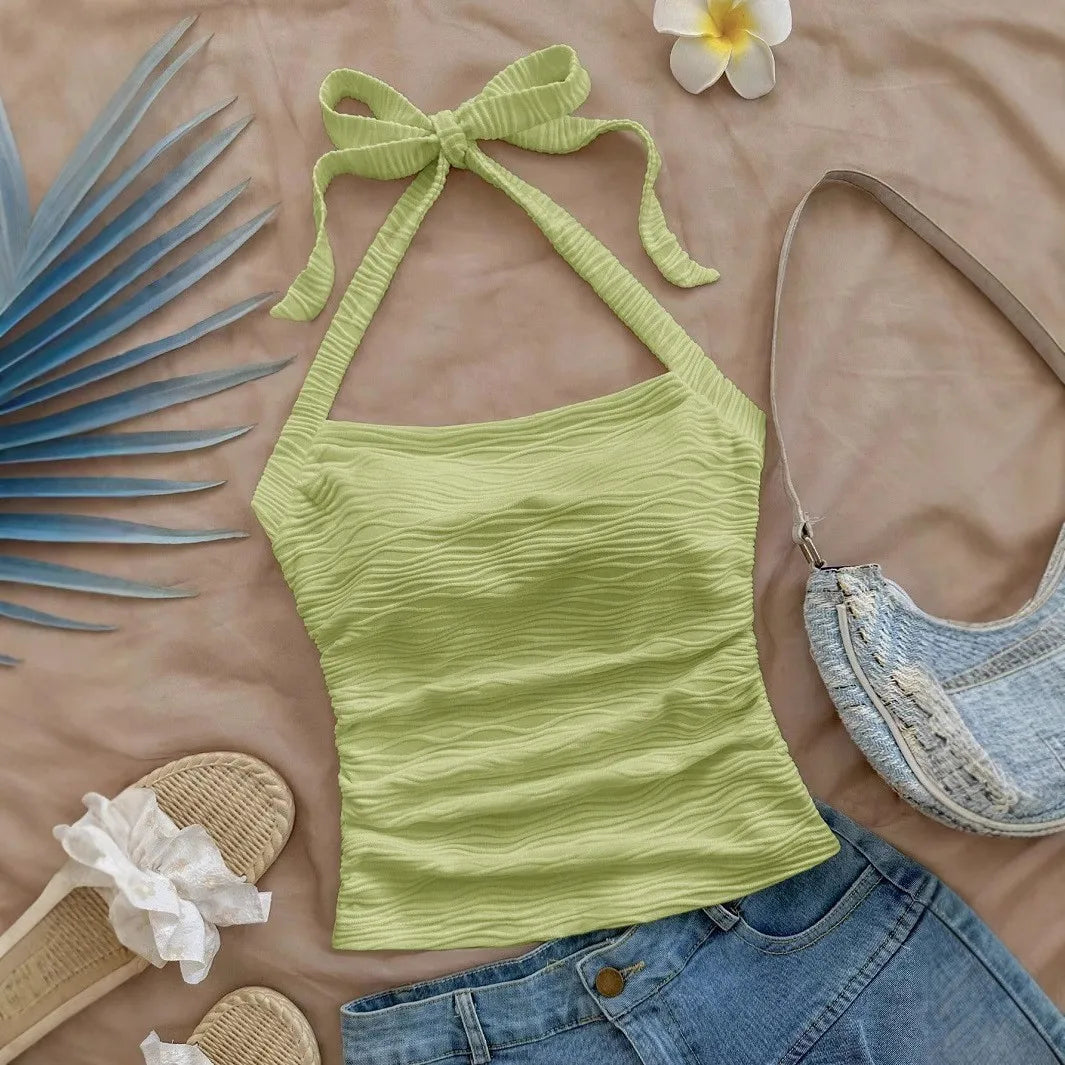 GETADME 2025 Summer New Women's Fashion Crop Halter Inside The Halter Wearing Sleeveless Short Slimming Vest Top